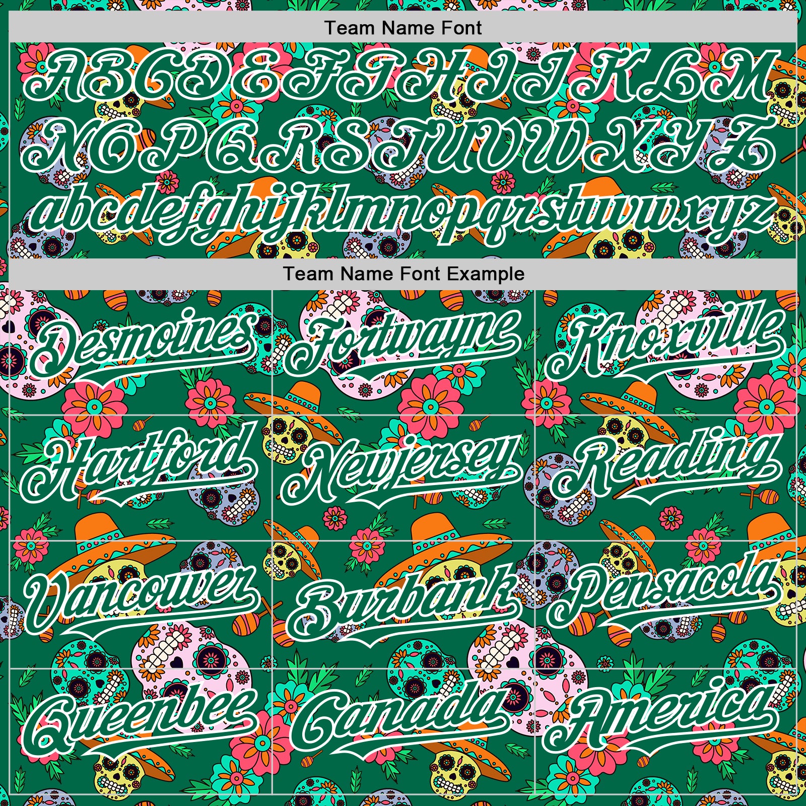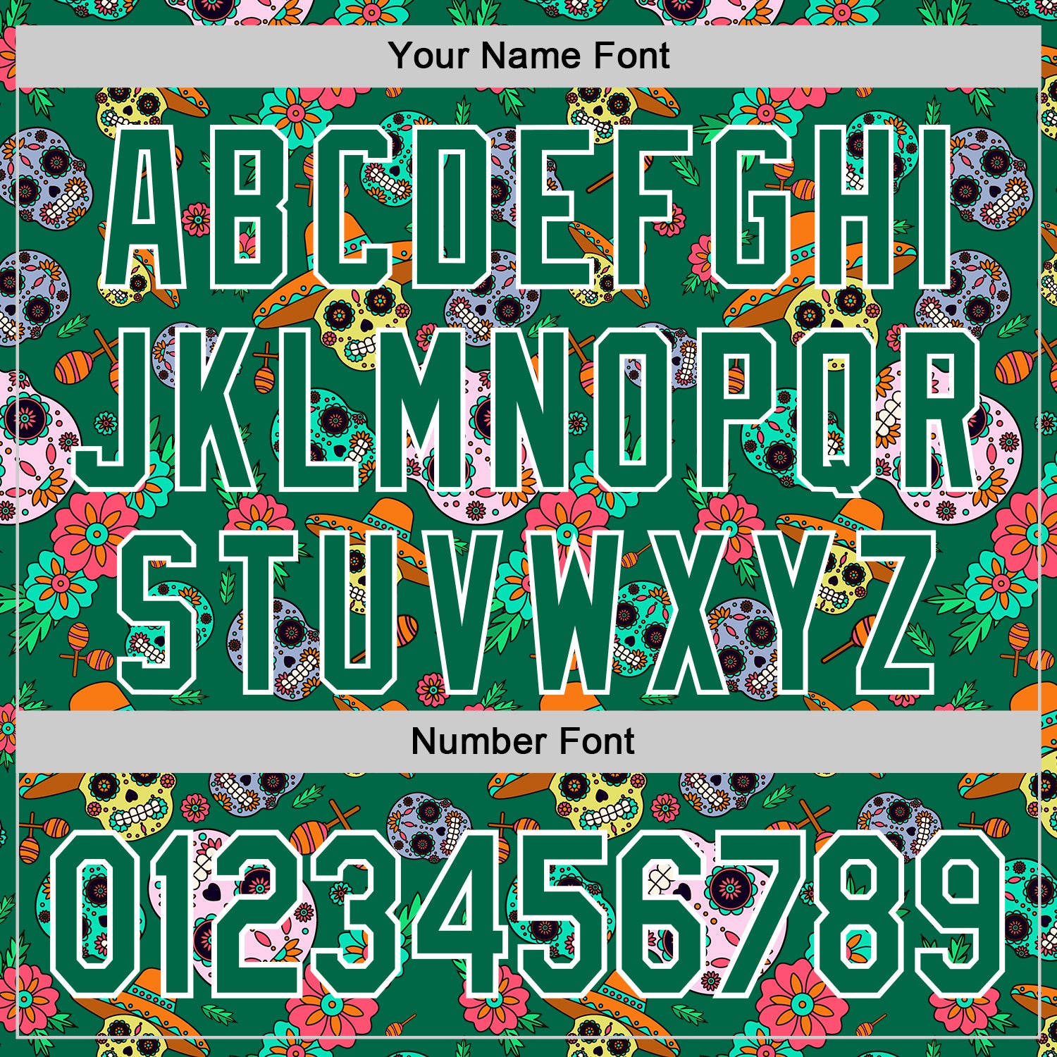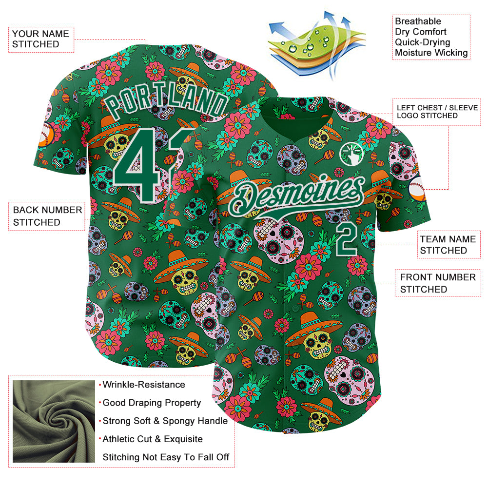 Custom Kelly Green White Sugar Skull Day of the Dead Mexican Folk Art Authentic Baseball Jersey