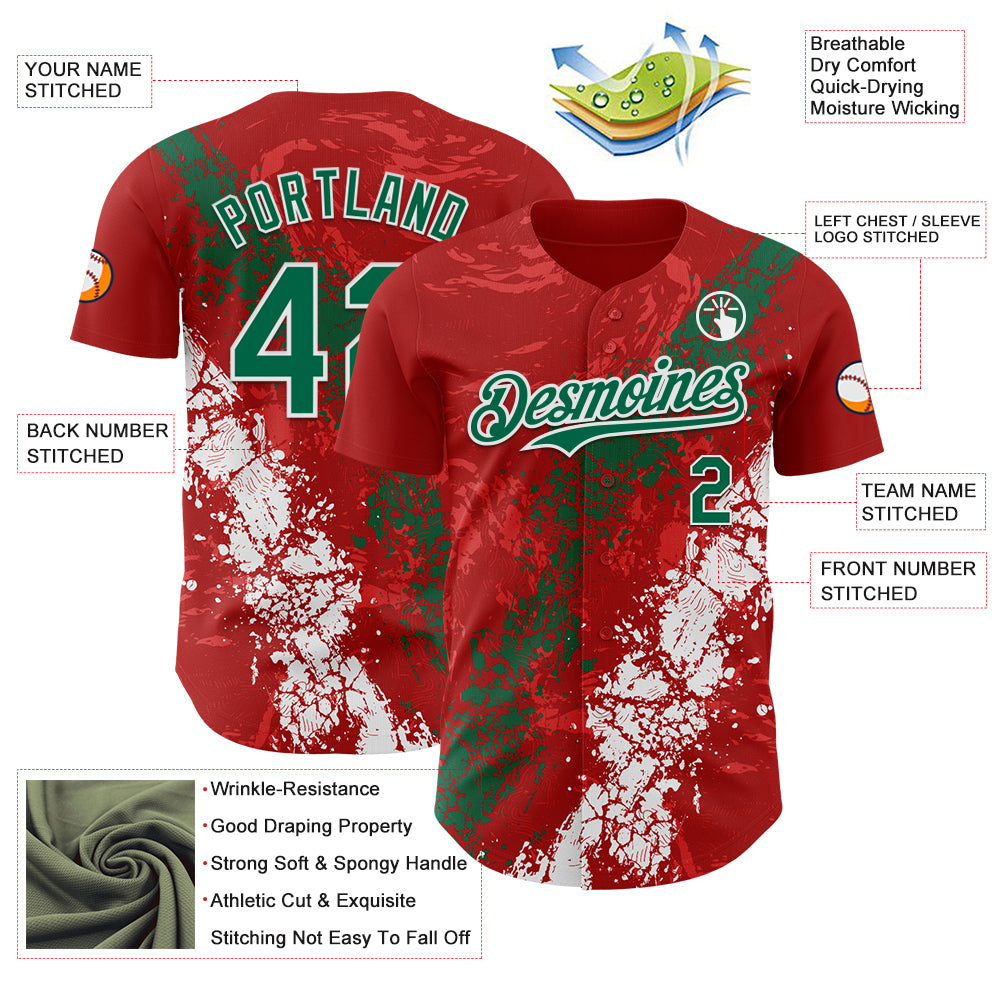 Custom Red Kelly Green-White 3D Pattern Design Splash Authentic Baseball Jersey