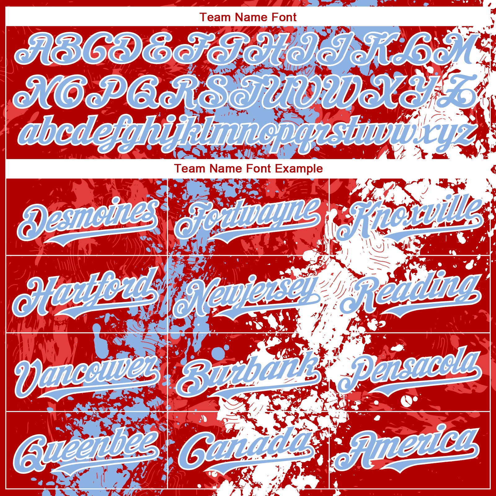Custom Red Light Blue-White 3D Pattern Design Splash Authentic Baseball Jersey