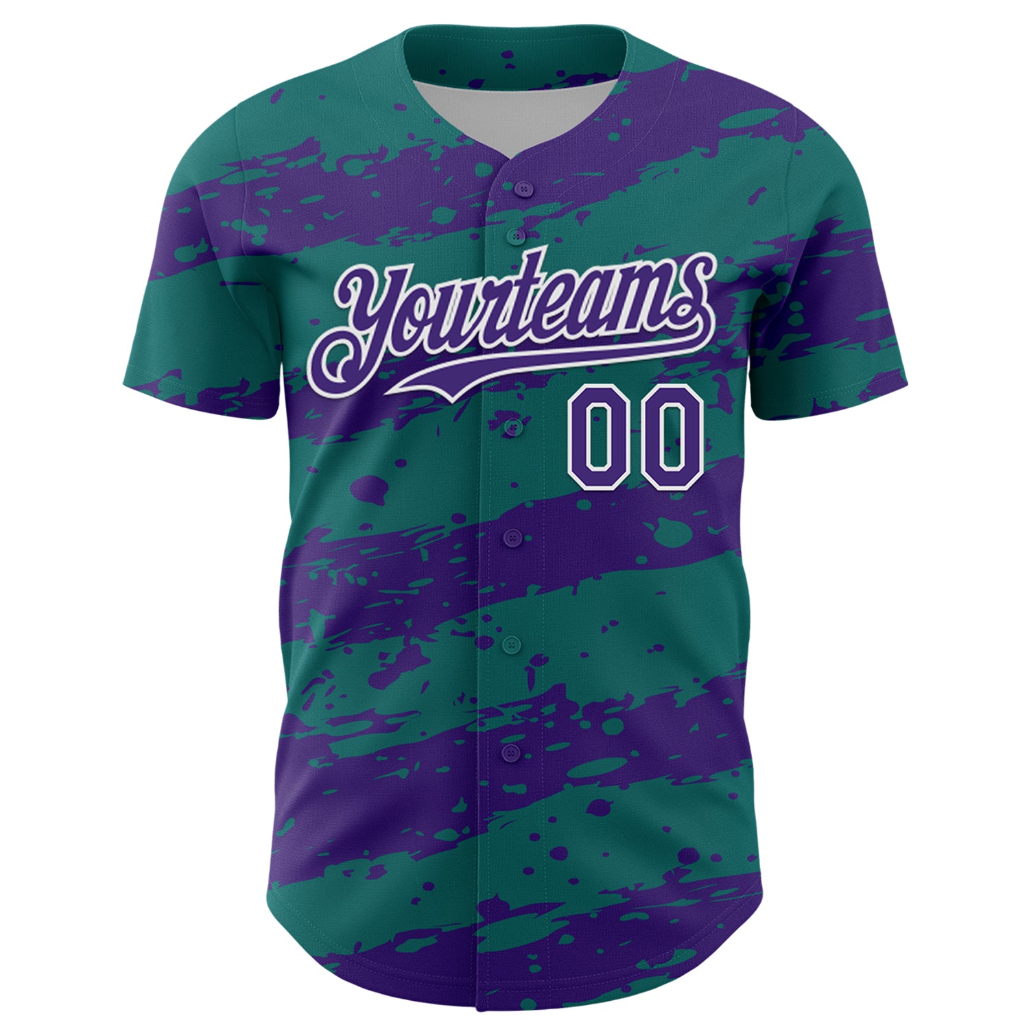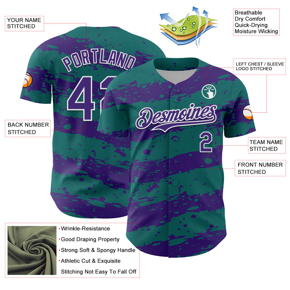 Custom Teal Purple-White 3D Pattern Design Paint Splash Stripe Authentic Baseball Jersey