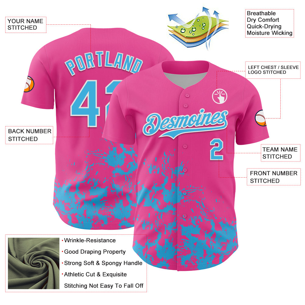 Custom Pink Sky Blue-White Splatter Authentic Baseball Jersey