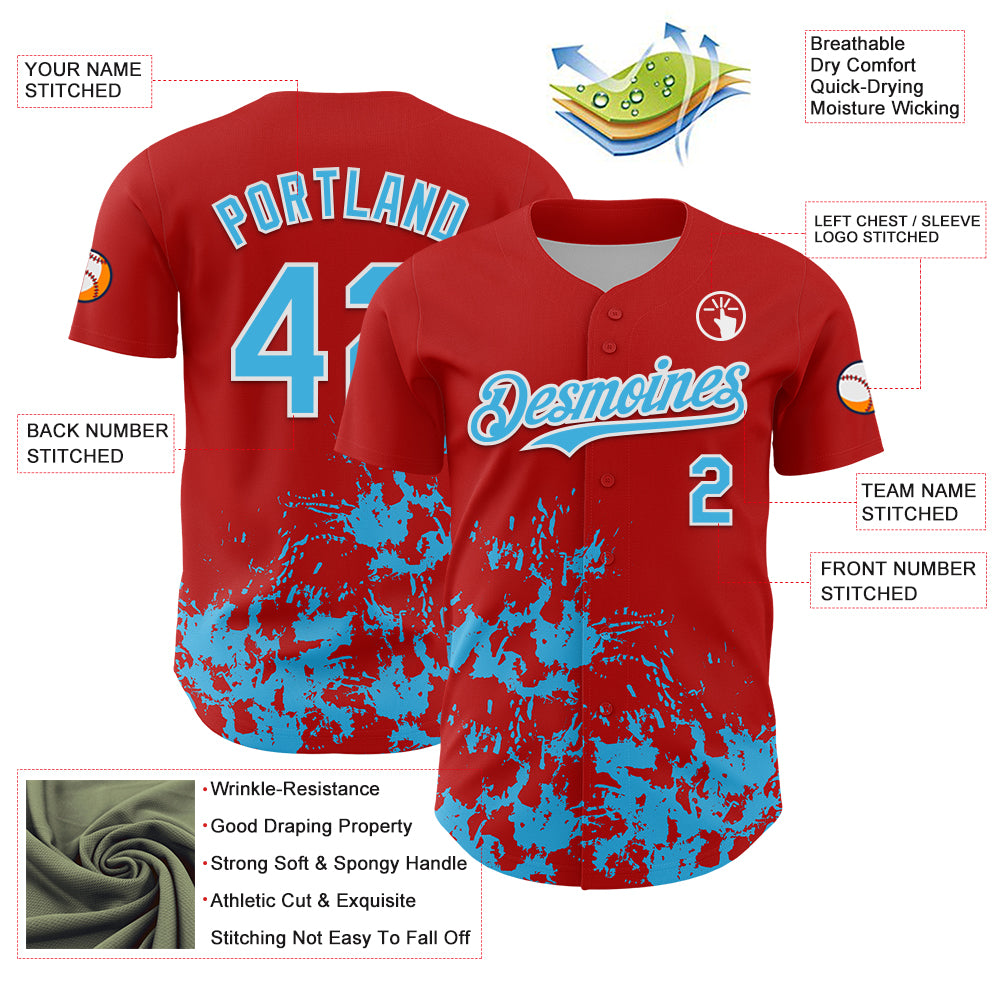 Custom Red Sky Blue-White Splatter Authentic Baseball Jersey