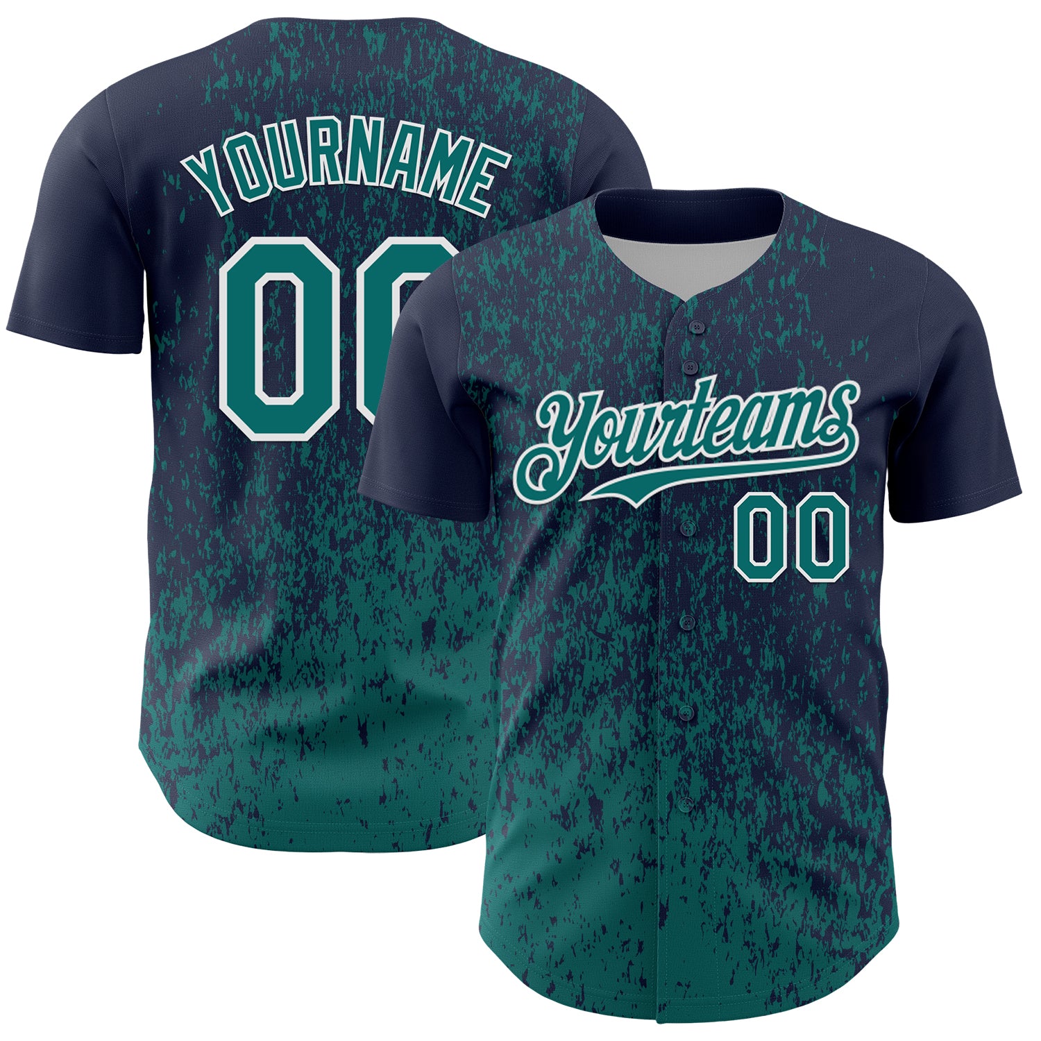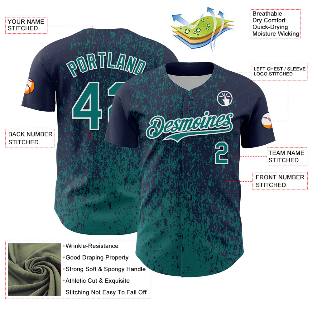 Custom Navy Teal-White 3D Pattern Design Abstract Fragment Splatter Authentic Baseball Jersey