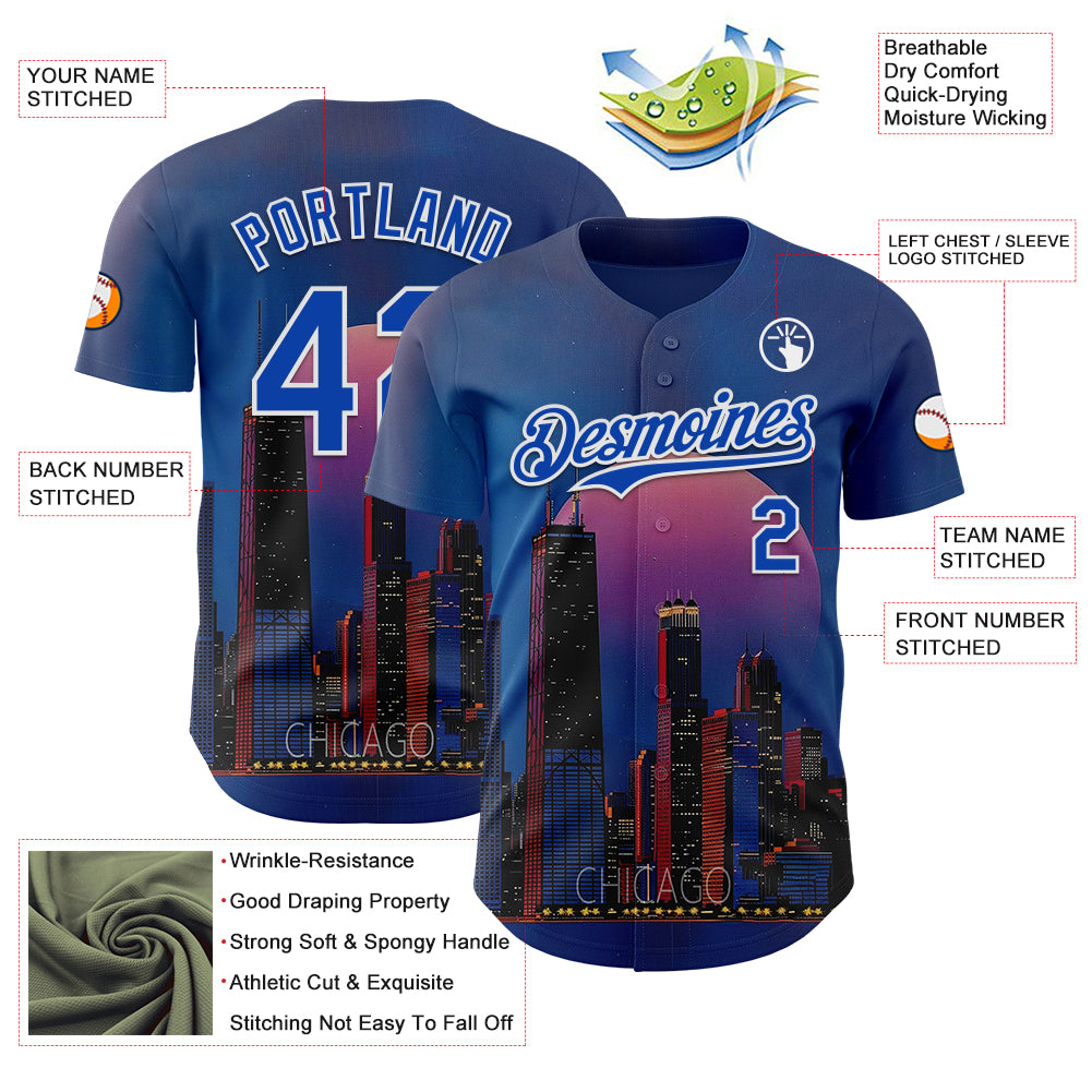 Custom Blue Thunder Blue-White Chicago Illinois Nightscape Landmark City Symbol Authentic Baseball Jersey