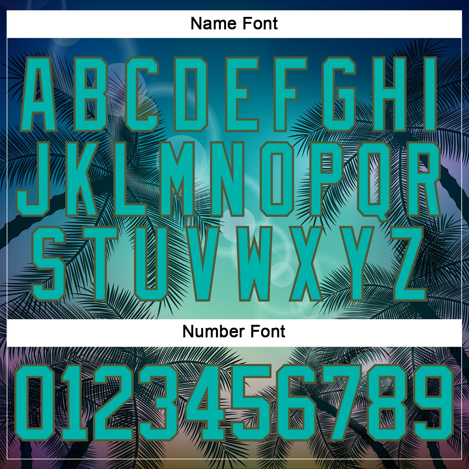 Custom Aqua Blue Olive-White 3D Pattern Gradient Hawaii Tropical Palm Trees Hockey Lace Neck Jersey