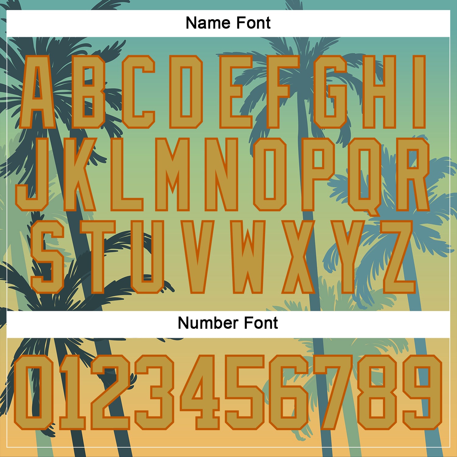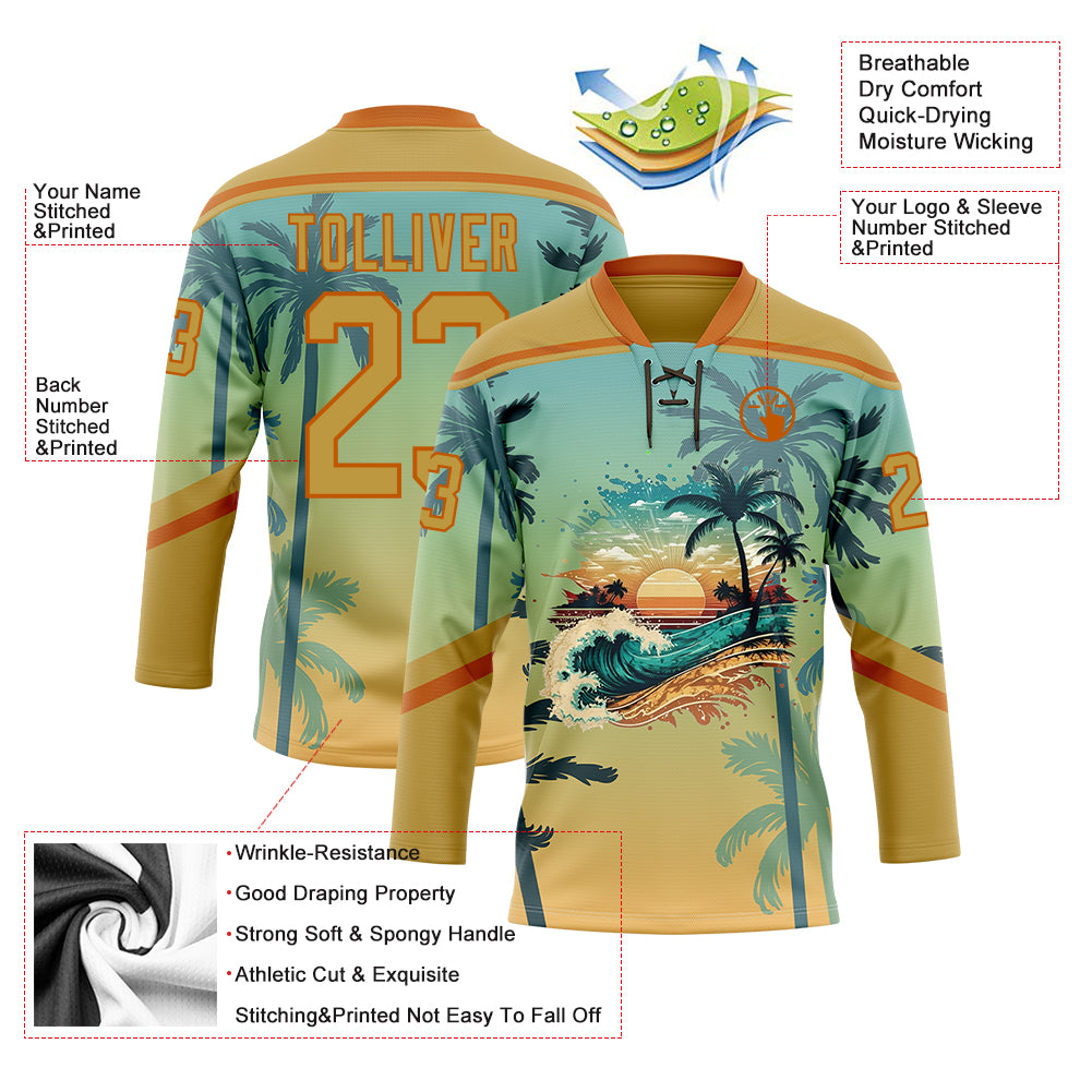 Custom Old Gold Blue-Texas Orange 3D Pattern Gradient Hawaii Tropical Palm Trees Hockey Lace Neck Jersey