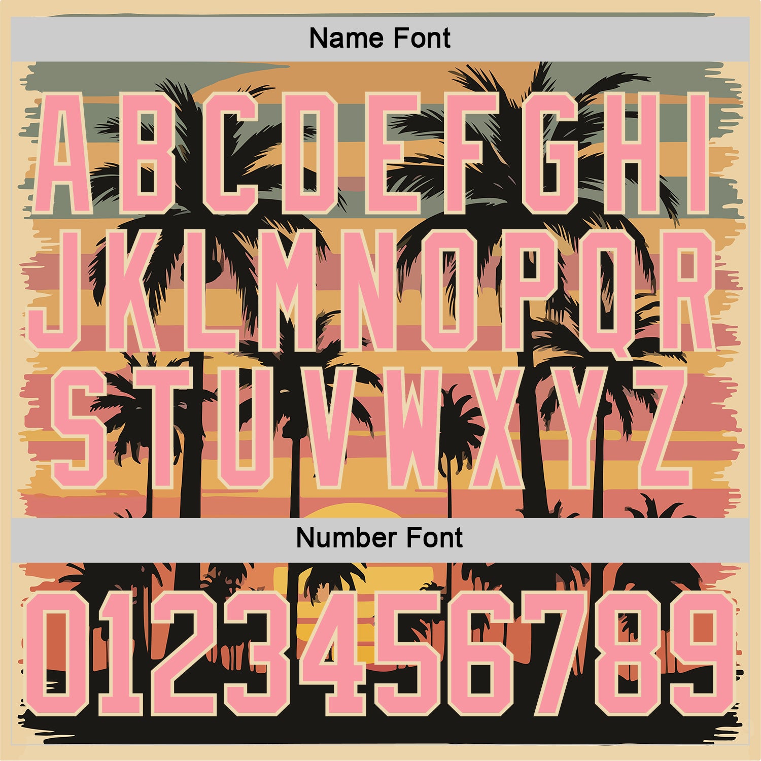 Custom Medium Pink Cream Yellow-Black 3D Pattern Gradient Hawaii Tropical Palm Trees Hockey Lace Neck Jersey