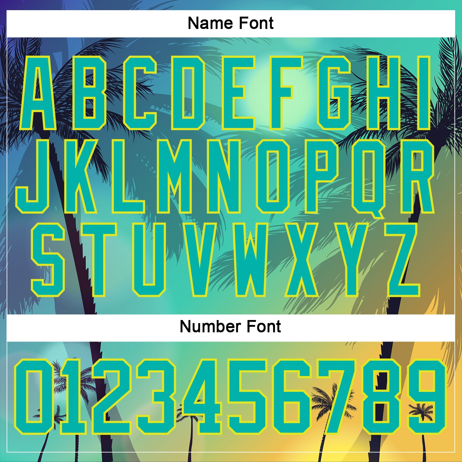 Custom Aqua Neon Yellow-Pea Green 3D Pattern Gradient Hawaii Tropical Palm Trees Hockey Lace Neck Jersey