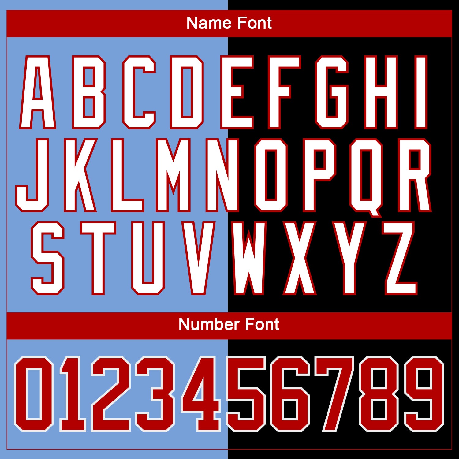 Custom Black Red Powder Blue-White Split Fashion Hockey Lace Neck Jersey
