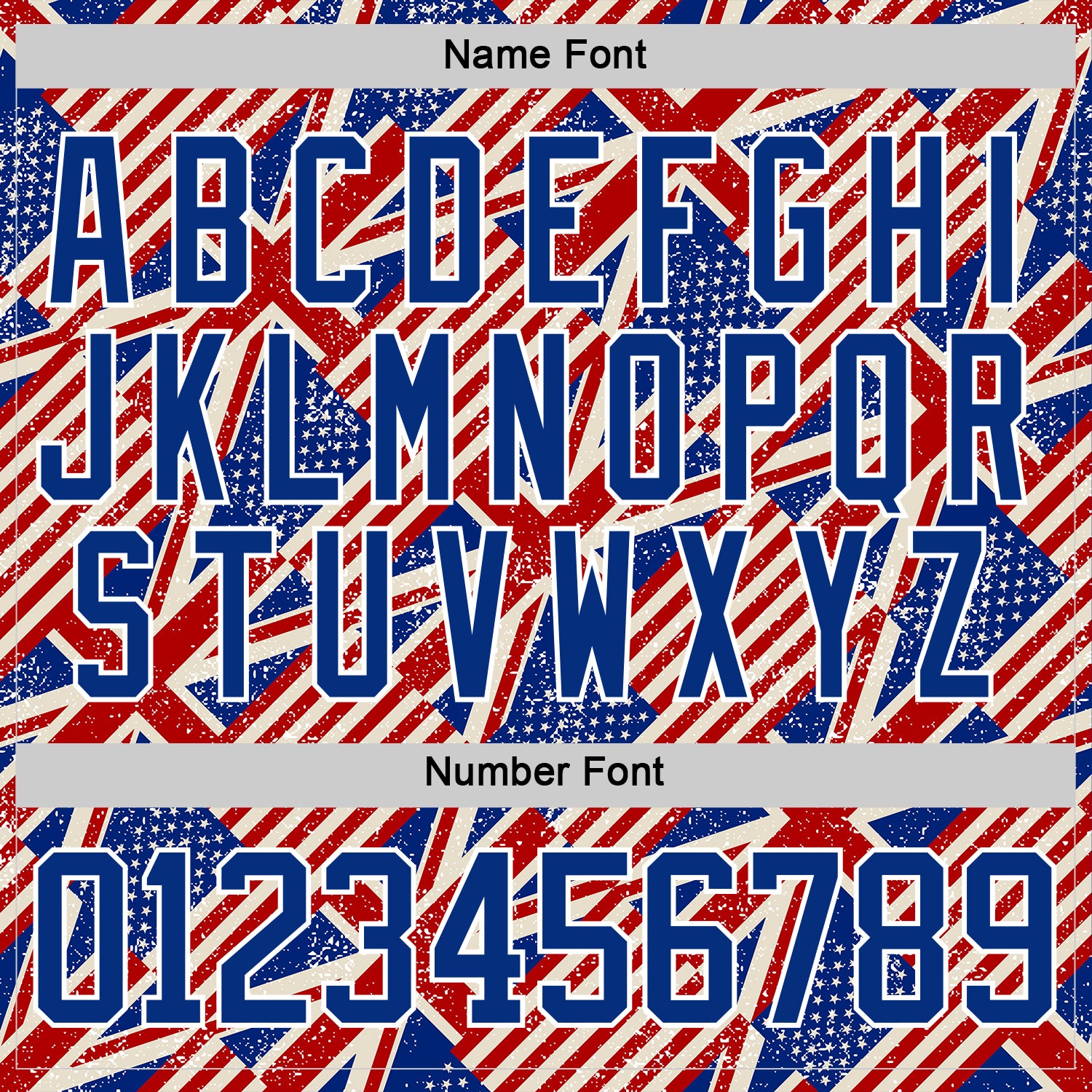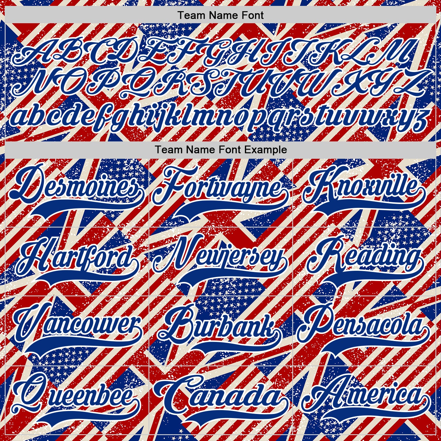 Custom Royal Red Cream-White American Flag Grunge Hockey Lace Neck Jersey