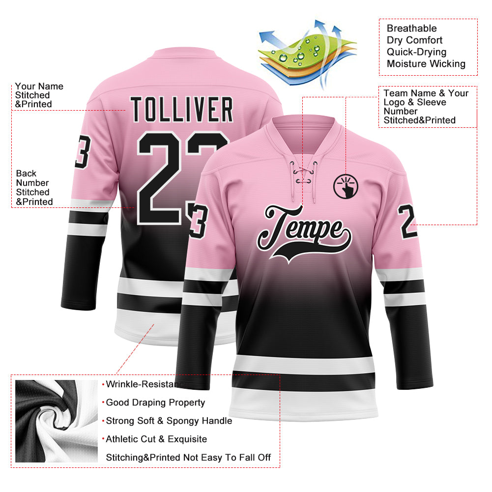 Custom Light Pink Black-White Fade Fashion Hockey Lace Neck Jersey