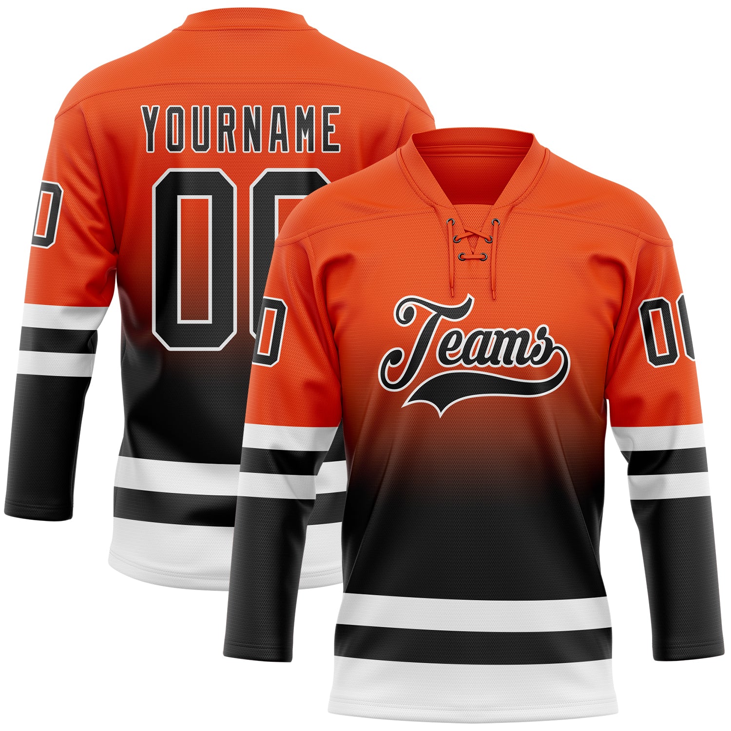 Custom Orange Black-White Fade Fashion Hockey Lace Neck Jersey