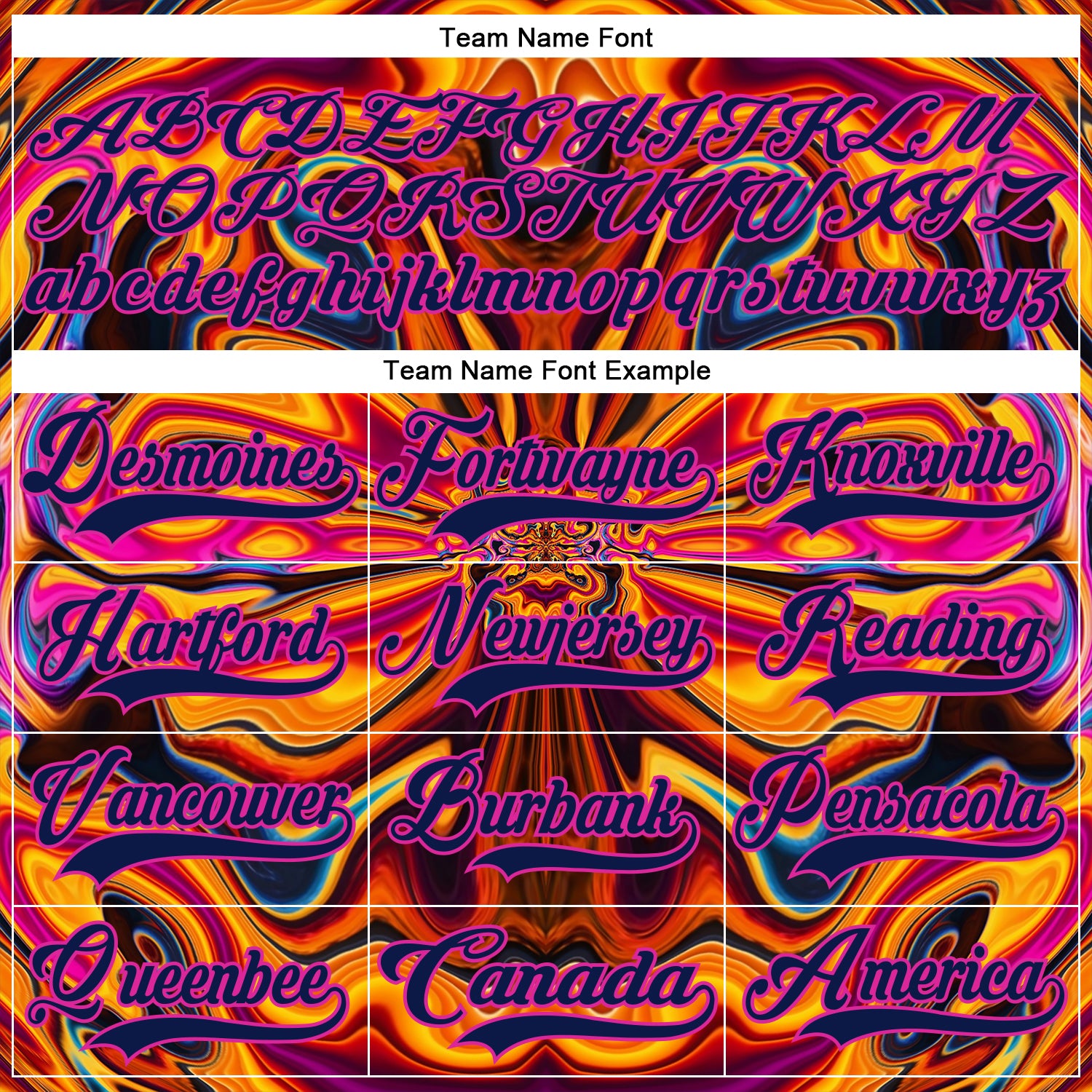 Custom Navy Yellow-Deep Pink 3D Pattern Trippy Psychedelic Fluid Hockey Lace Neck Jersey