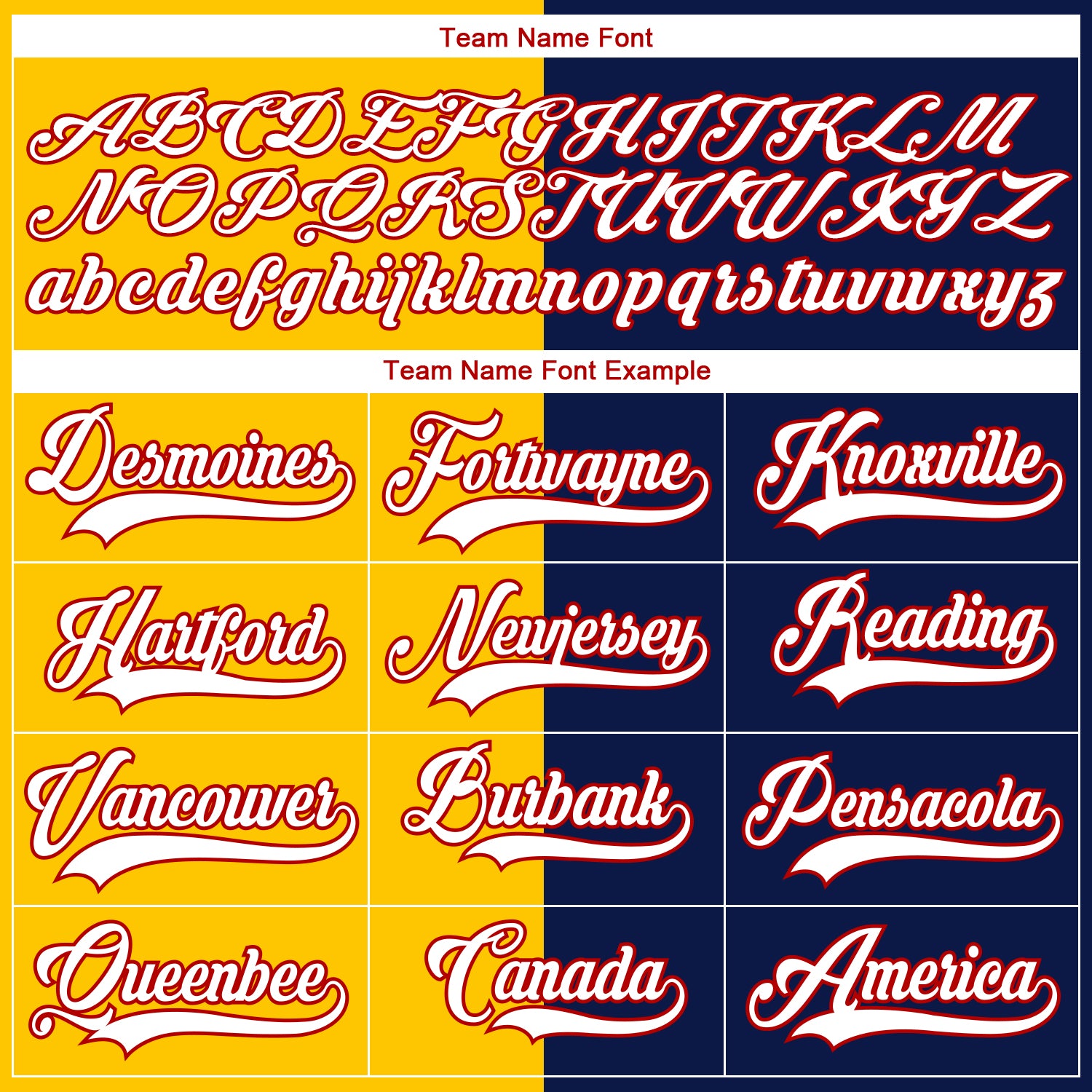 Custom Navy Red Yellow-White Split Fashion Hockey Lace Neck Jersey