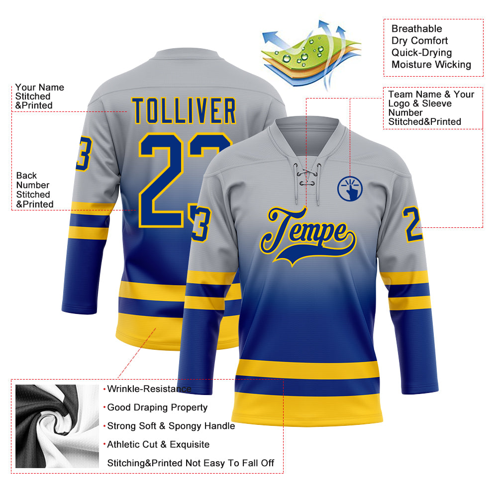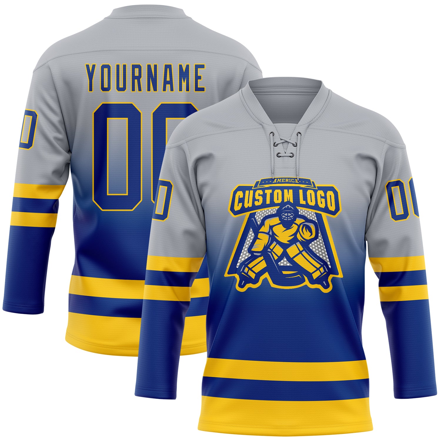 Custom Gray Royal-Yellow Fade Fashion Hockey Lace Neck Jersey