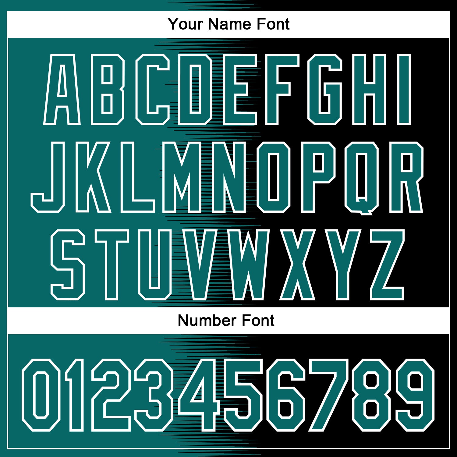 Custom Teal Black-White Gradient Line Bomber Full-Snap Varsity Letterman Hoodie Jacket