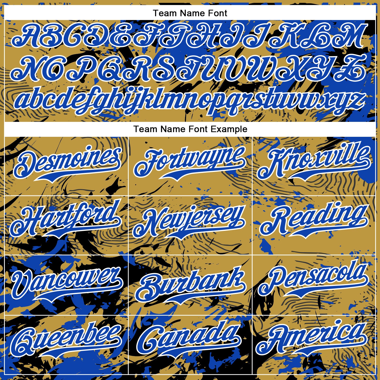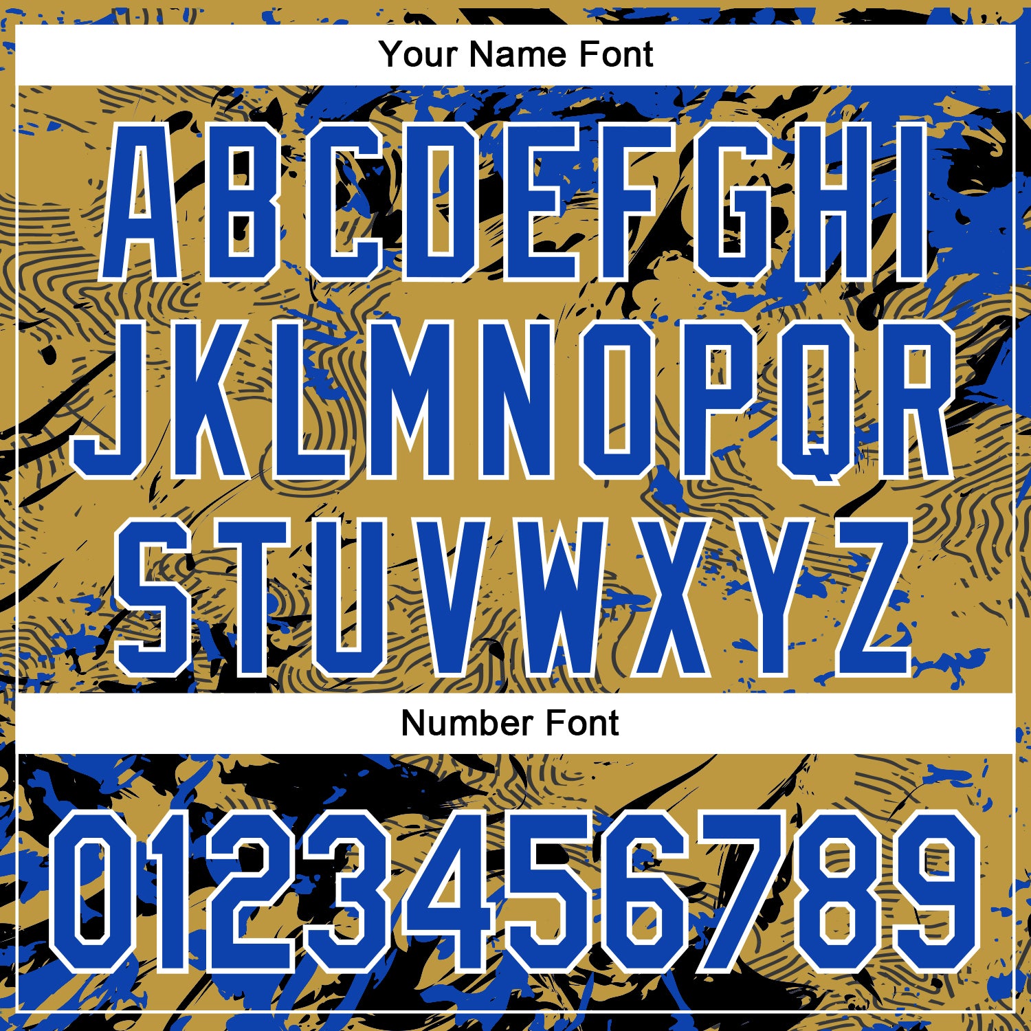 Custom Old Gold Thunder Blue Black-White Splash 3D Pattern Design Bomber Full-Snap Varsity Letterman Hoodie Jacket