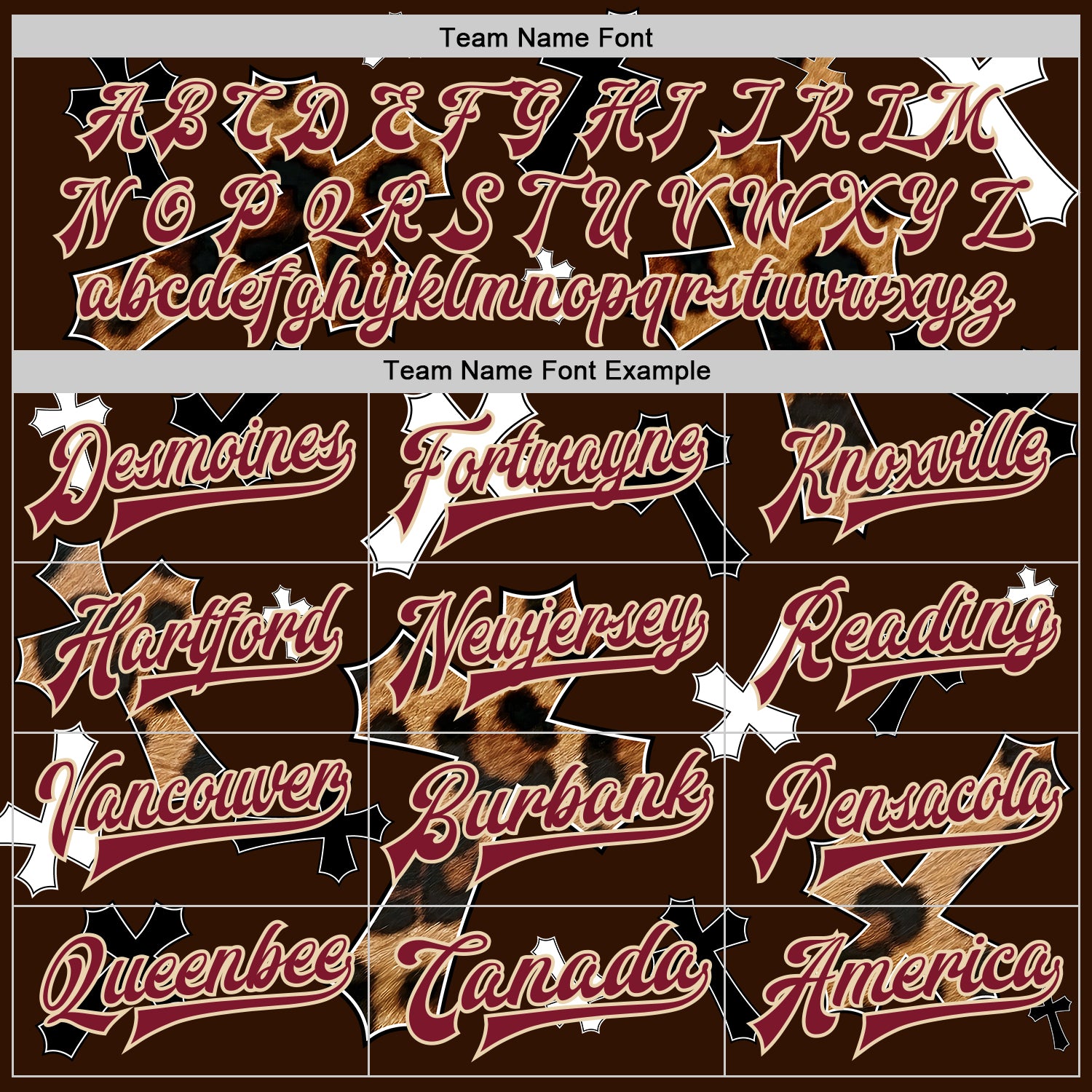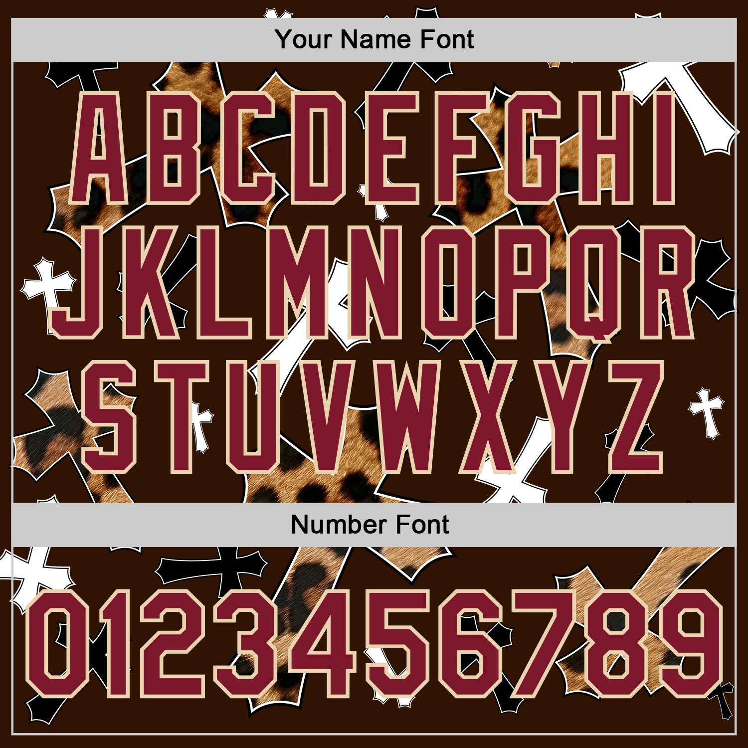 Custom Brown Crimson City Cream-Black Gothic Leopard Print Crosses 3D Pattern Design Bomber Full-Snap Varsity Letterman Jacket