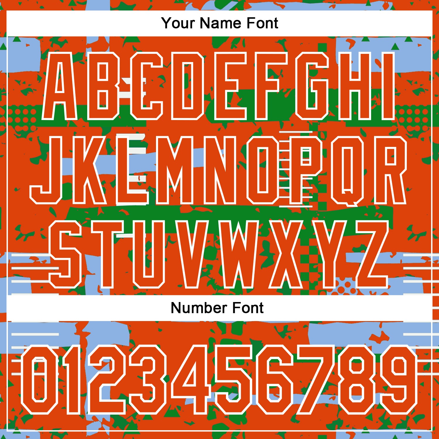 Custom Orange Light Blue Grass Green-White Abstract Fragment Shape 3D Pattern Design Bomber Full-Snap Varsity Letterman Hoodie Jacket