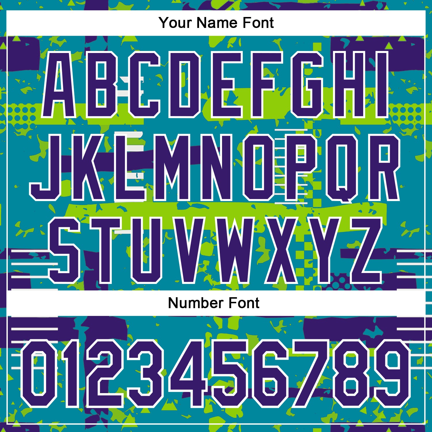 Custom Teal Purple Neon Green-White Abstract Fragment Shape 3D Pattern Design Bomber Full-Snap Varsity Letterman Hoodie Jacket