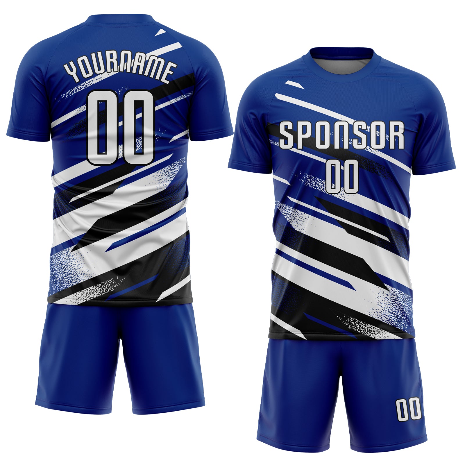 Custom Royal White-Black Grunge Stripe And Grainy Sports Sublimation Soccer Uniform Jersey