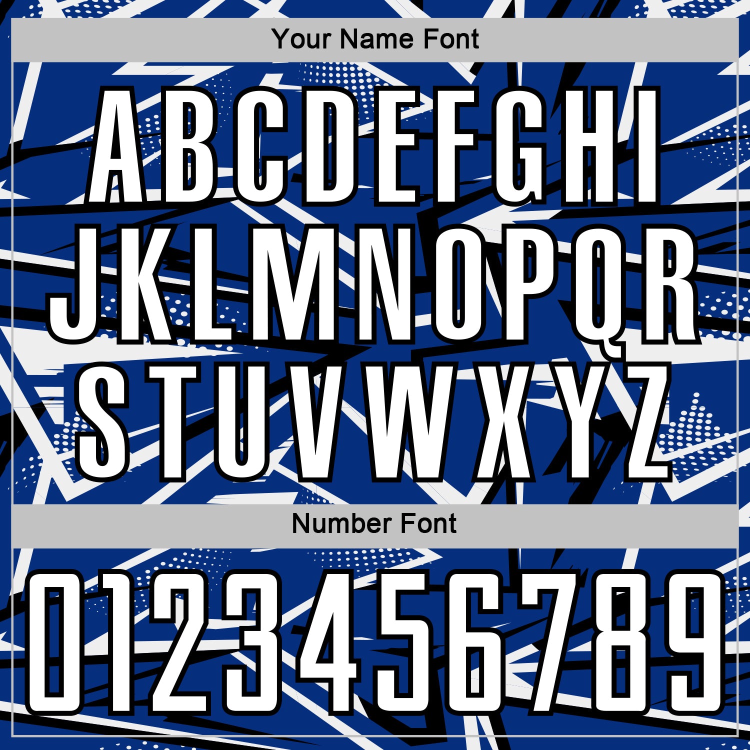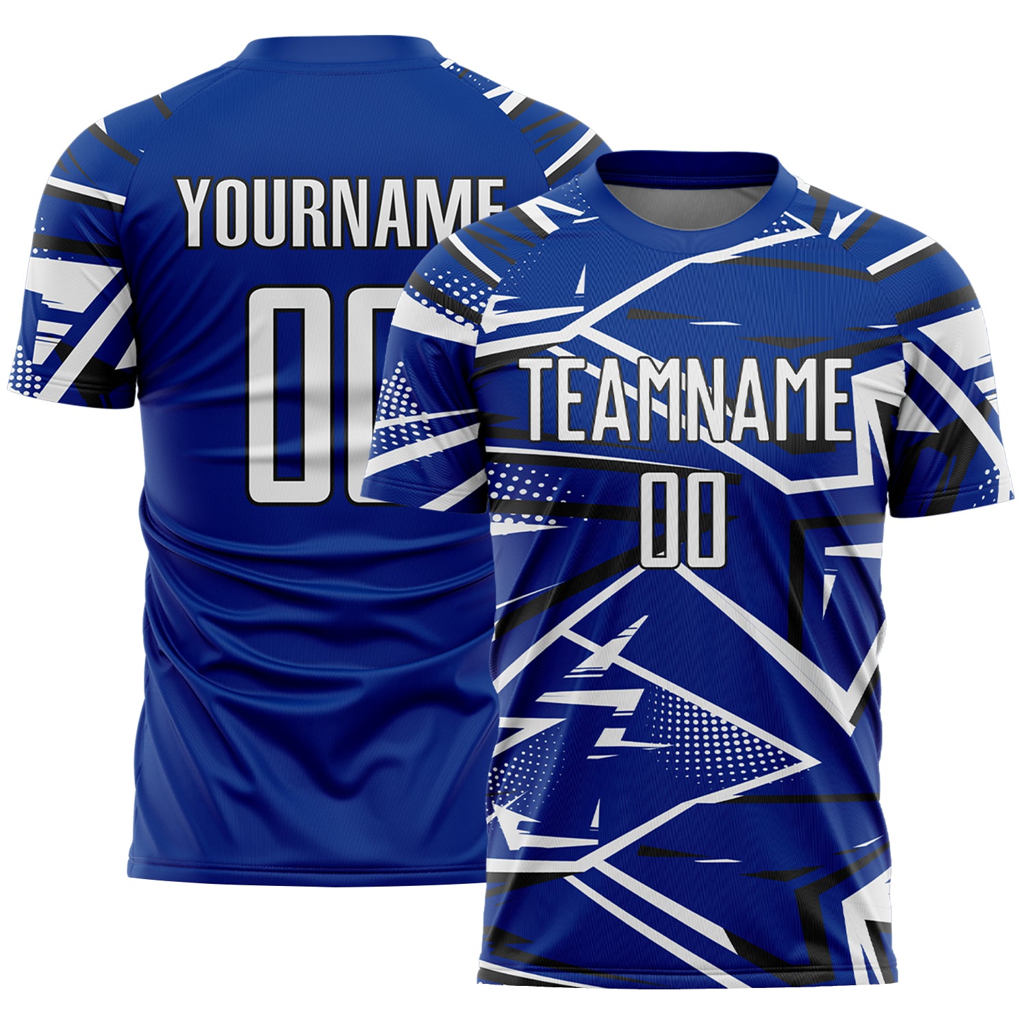 Custom Royal White-Black Abstract Geometric Stripes Sports Sublimation Soccer Uniform Jersey