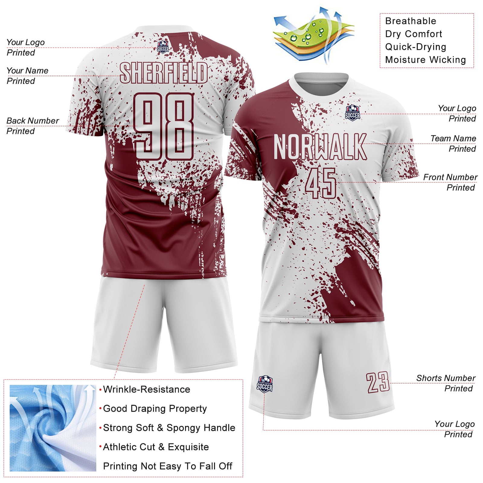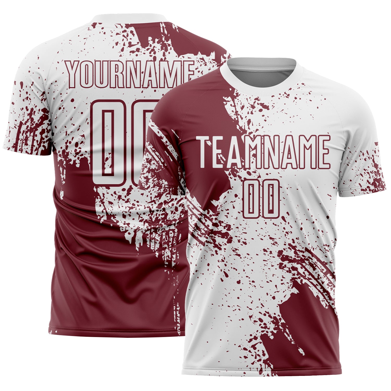 Custom White Burgundy Abstract Brush Stroke Sports Sublimation Soccer Uniform Jersey