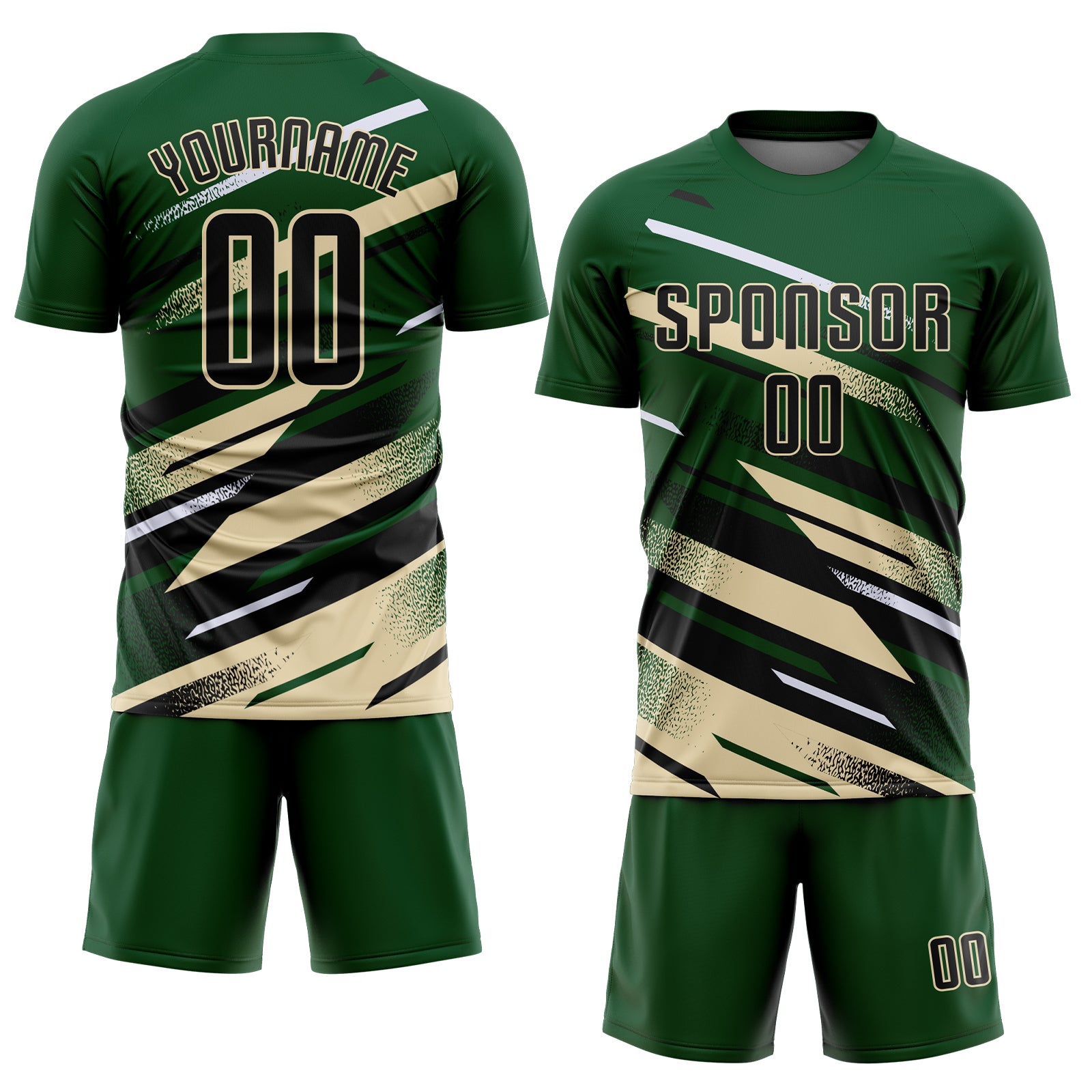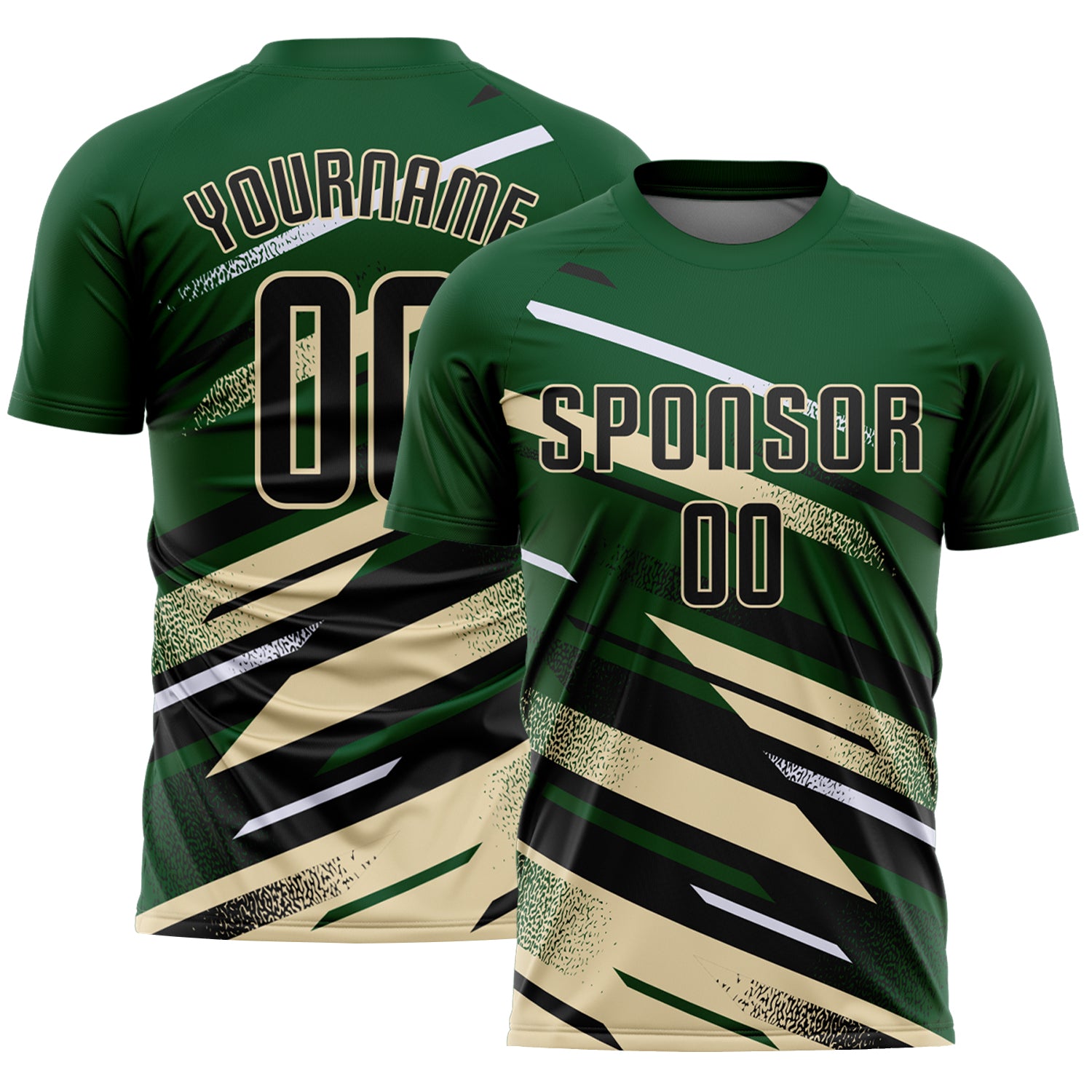 Custom Green Black Cream-White Grunge Stripe And Grainy Sports Sublimation Soccer Uniform Jersey