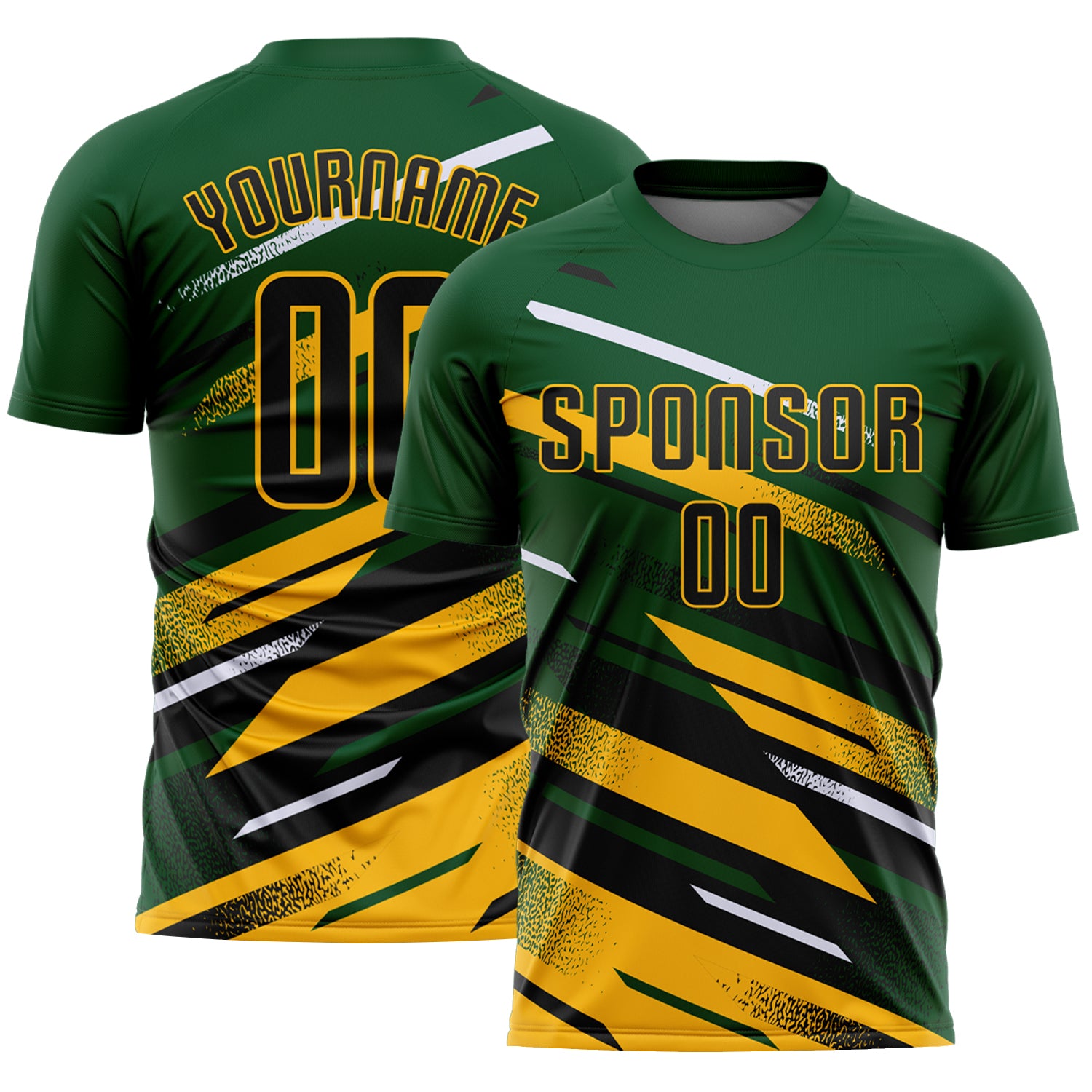 Custom Green Black Gold-White Grunge Stripe And Grainy Sports Sublimation Soccer Uniform Jersey