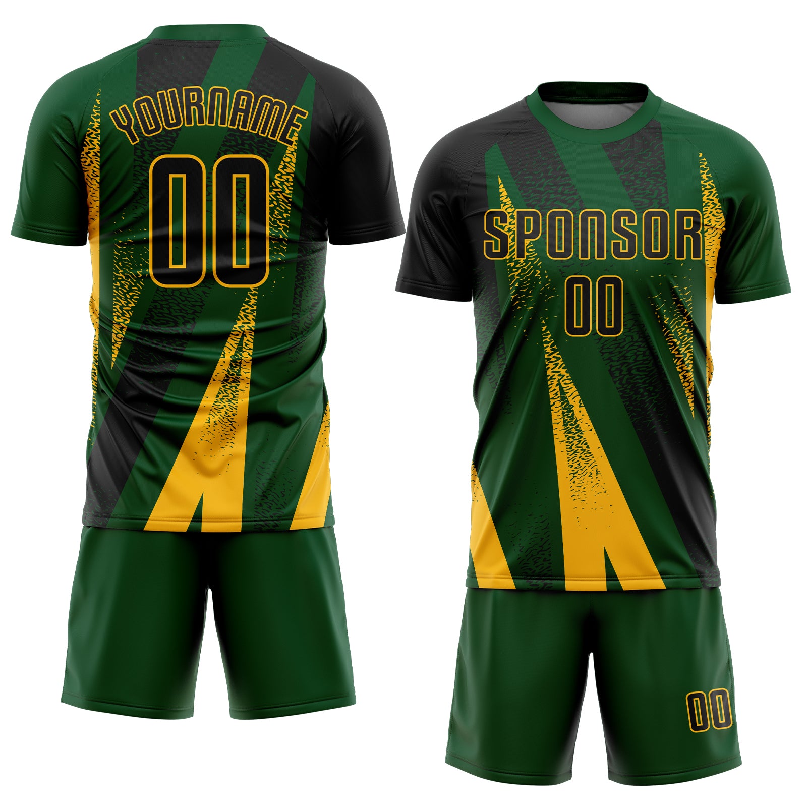 Custom Green Black-Gold Radial Burst Sports Sublimation Soccer Uniform Jersey