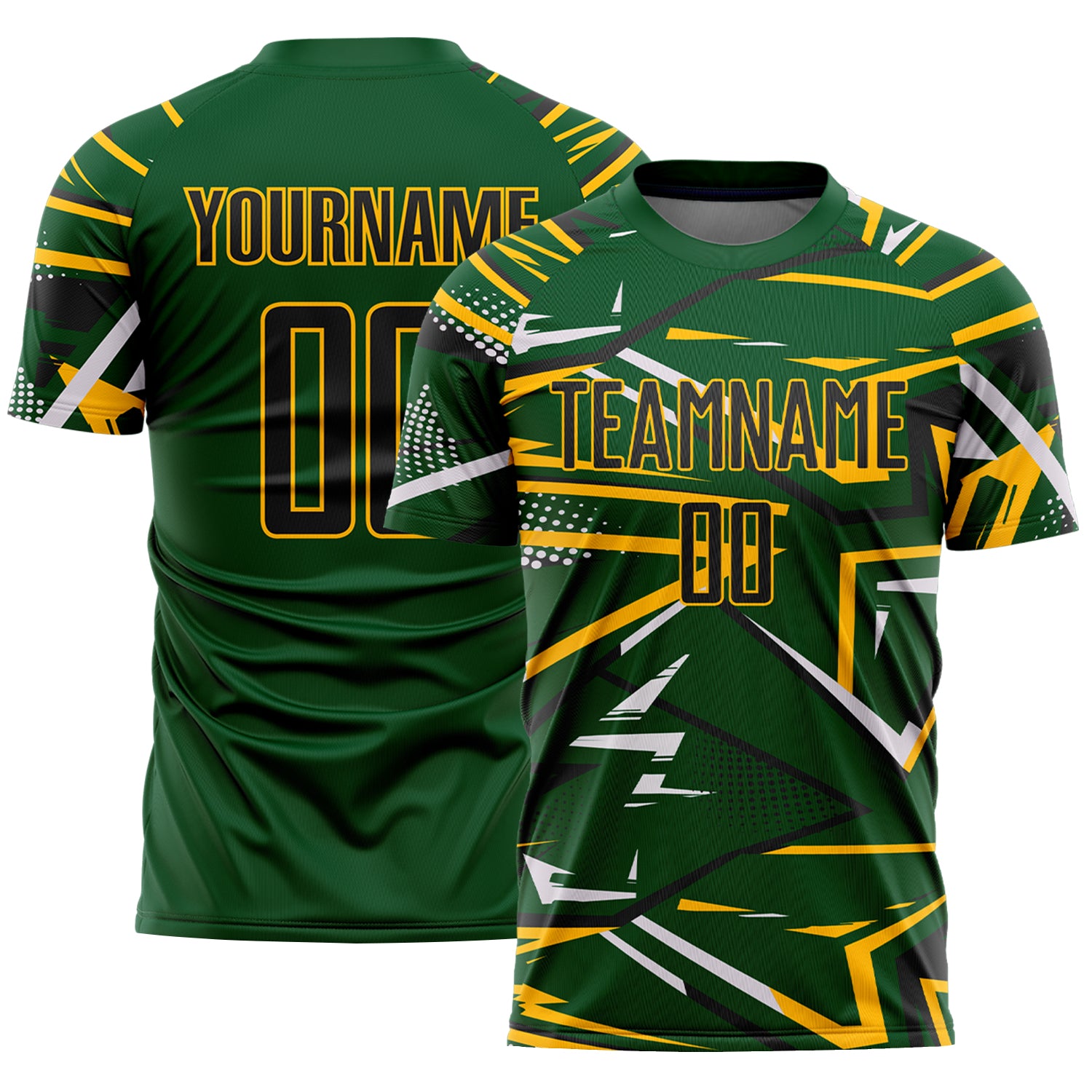 Custom Green Black Gold-White Abstract Geometric Stripes Sports Sublimation Soccer Uniform Jersey