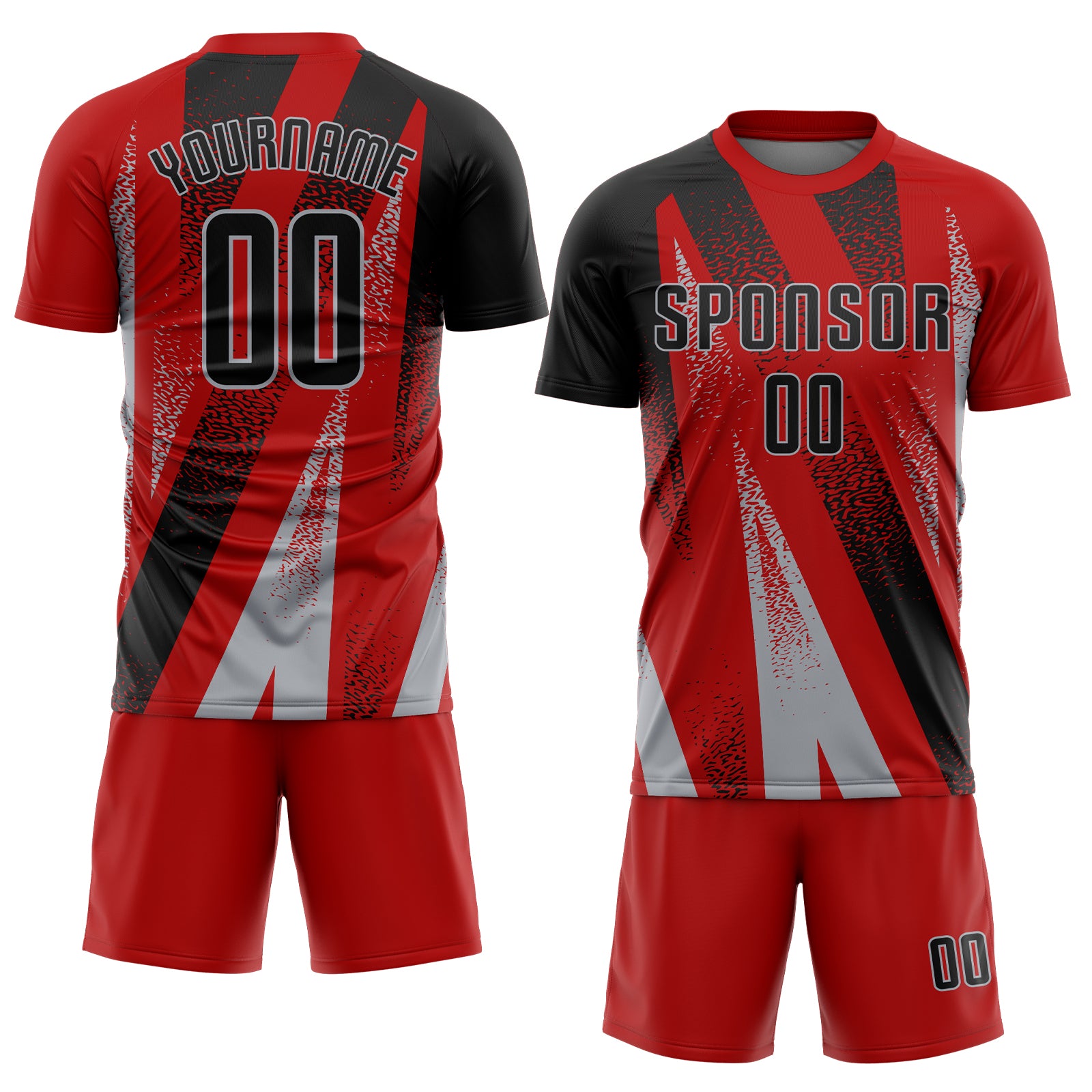 Custom Red Black-Gray Radial Burst Sports Sublimation Soccer Uniform Jersey