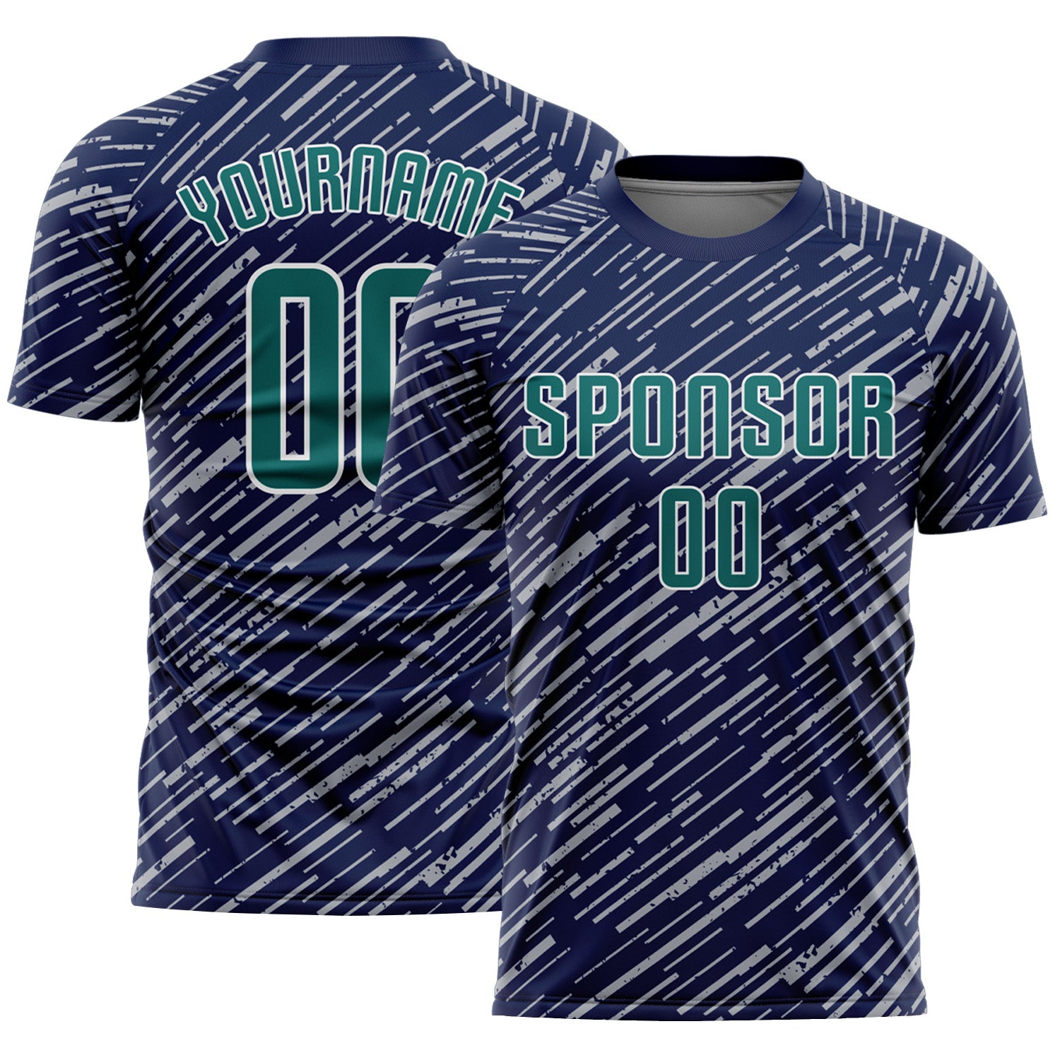 Custom Navy Teal Gray-White Line Sports Sublimation Soccer Uniform Jersey
