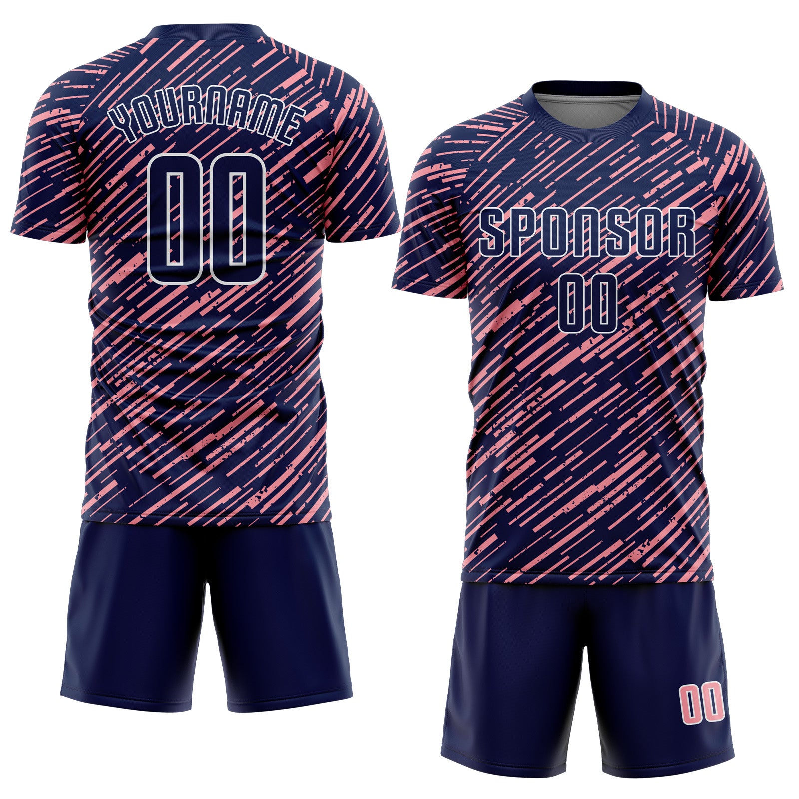 Custom Navy Medium Pink-White Line Sports Sublimation Soccer Uniform Jersey