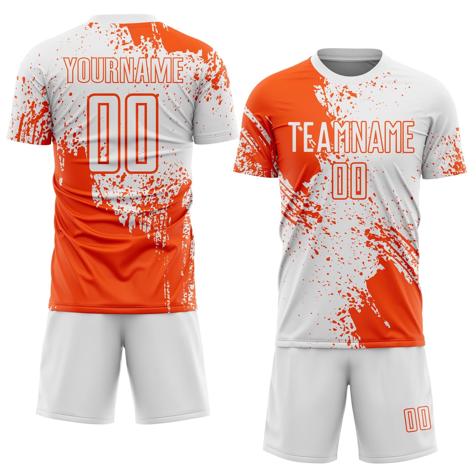 Custom White Orange Abstract Brush Stroke Sports Sublimation Soccer Uniform Jersey