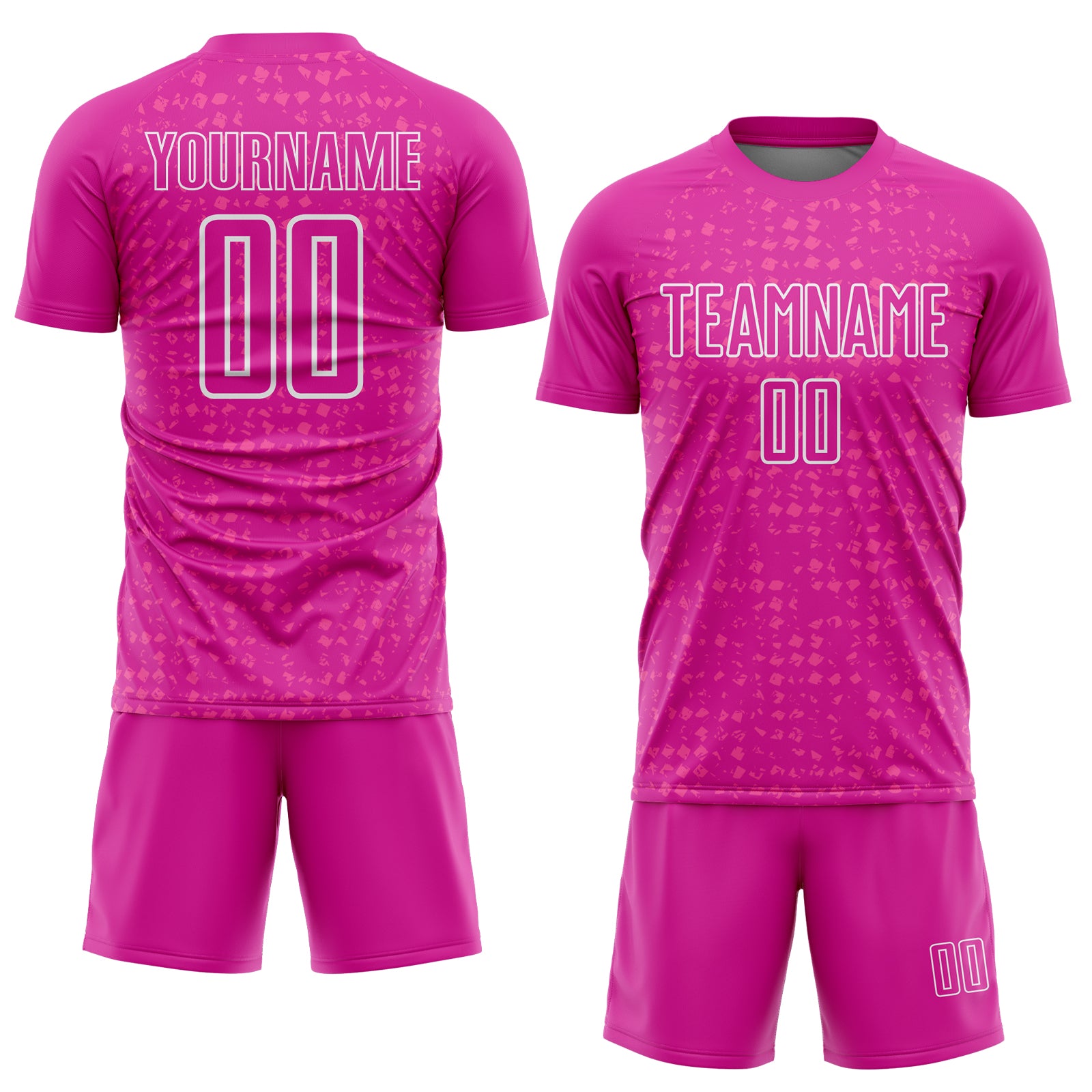 Custom Deep Pink White-Pink Digital Geometric Fragment Speckles Sublimation Soccer Uniform Jersey