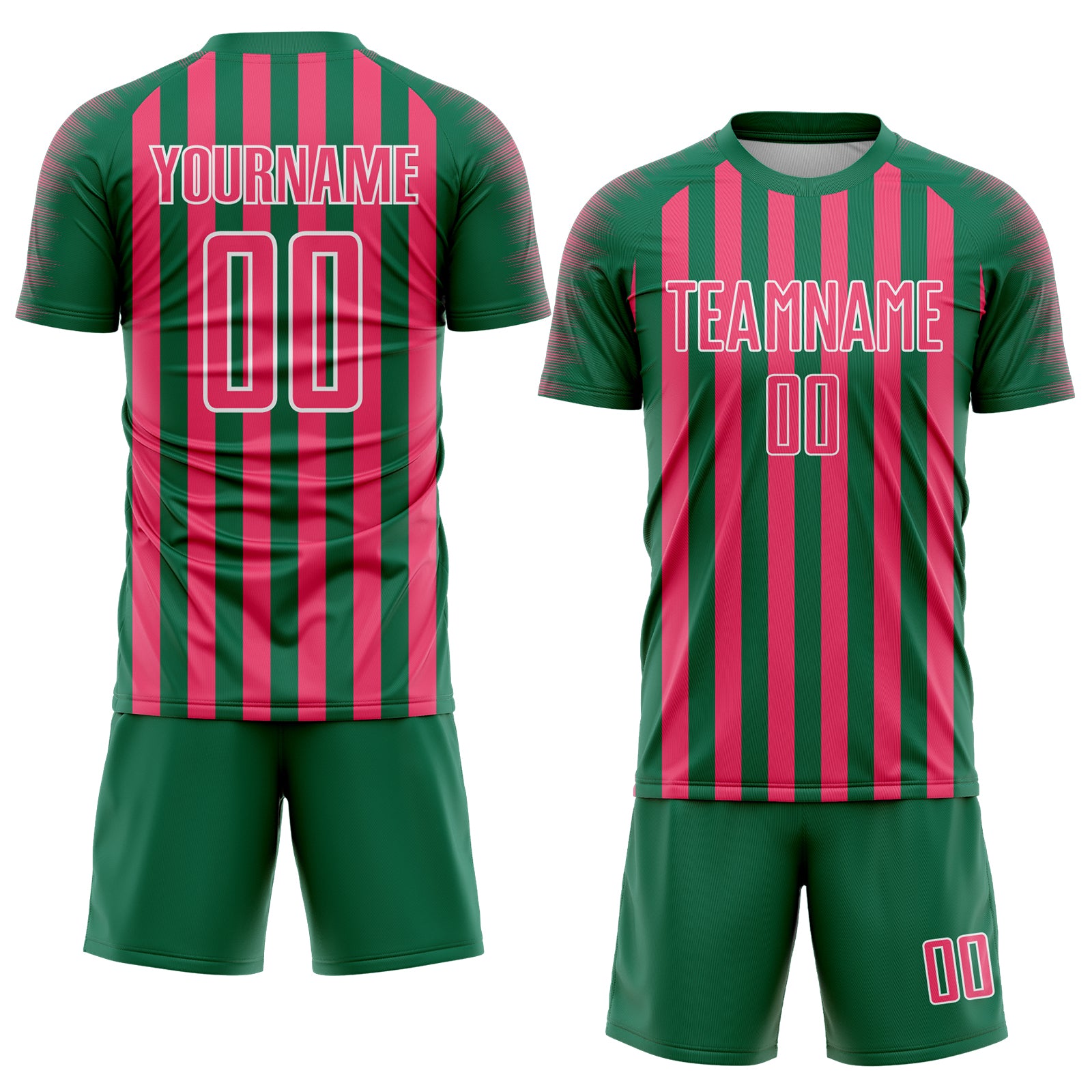 Custom Kelly Green Neon Pink-White Stripe Sports Sublimation Soccer Uniform Jersey