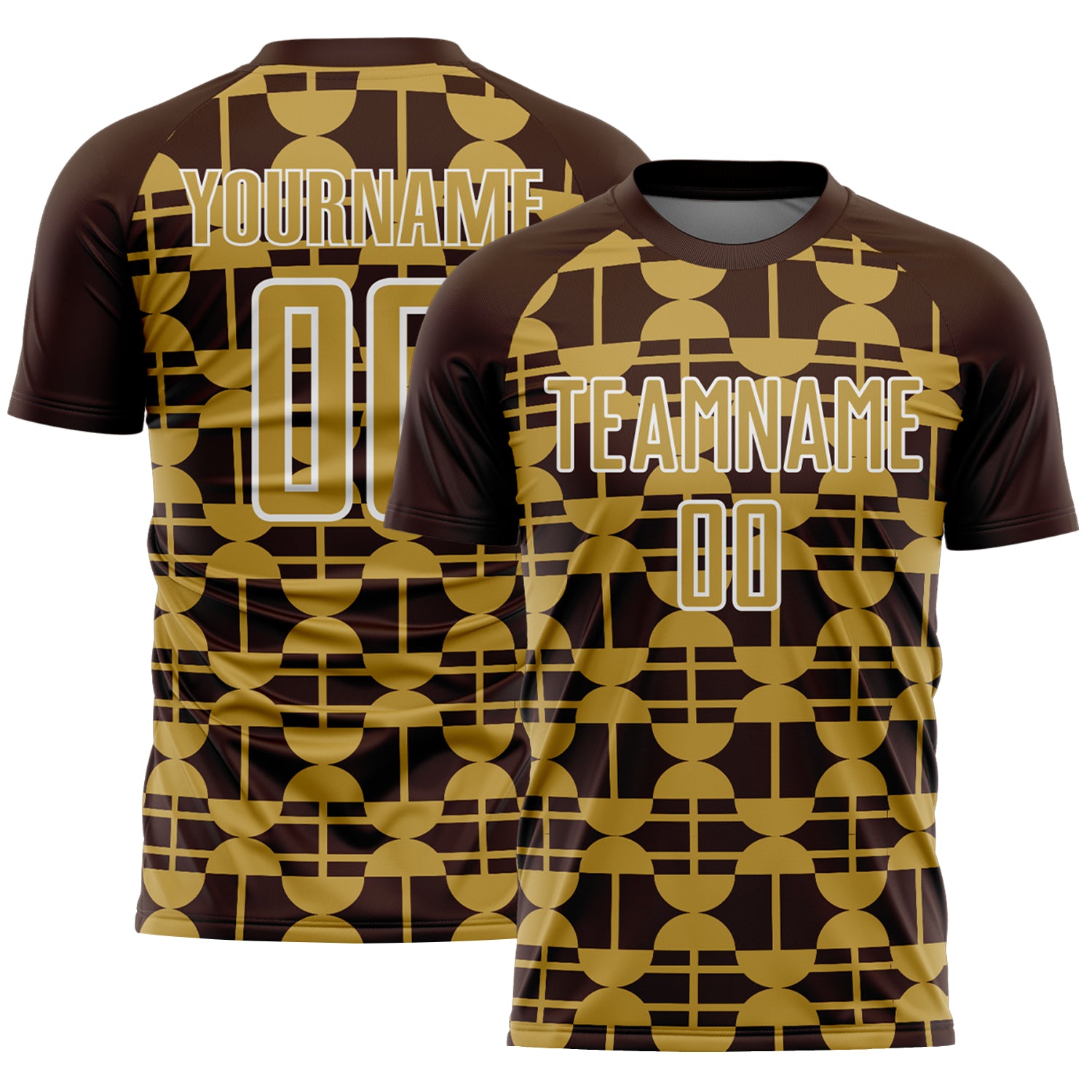 Custom Brown Old Gold-White Geometric Shapes Sports Sublimation Soccer Uniform Jersey