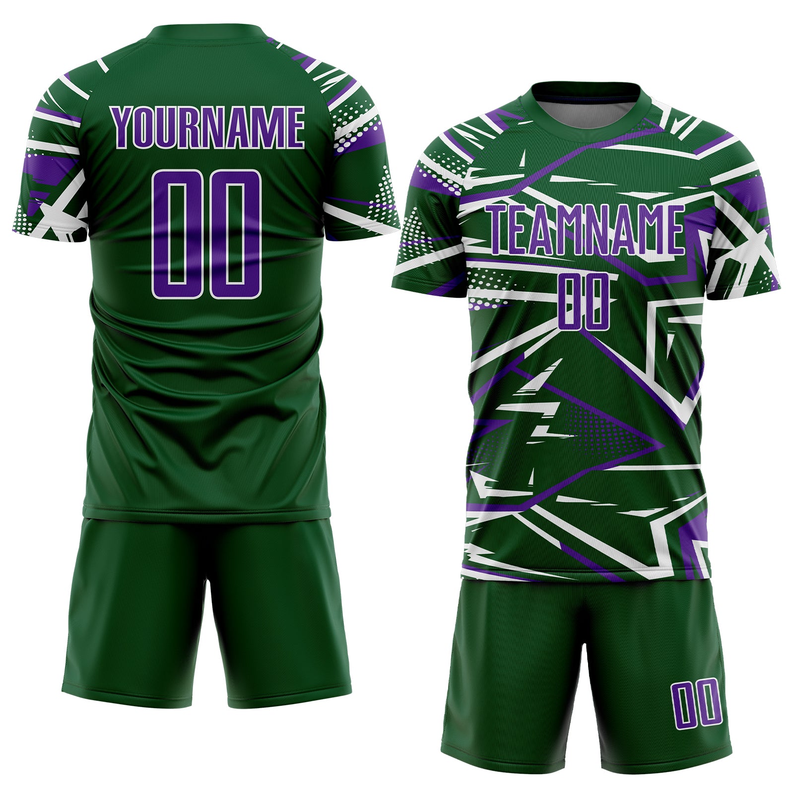 Custom Green Purple-White Abstract Geometric Stripes Sports Sublimation Soccer Uniform Jersey