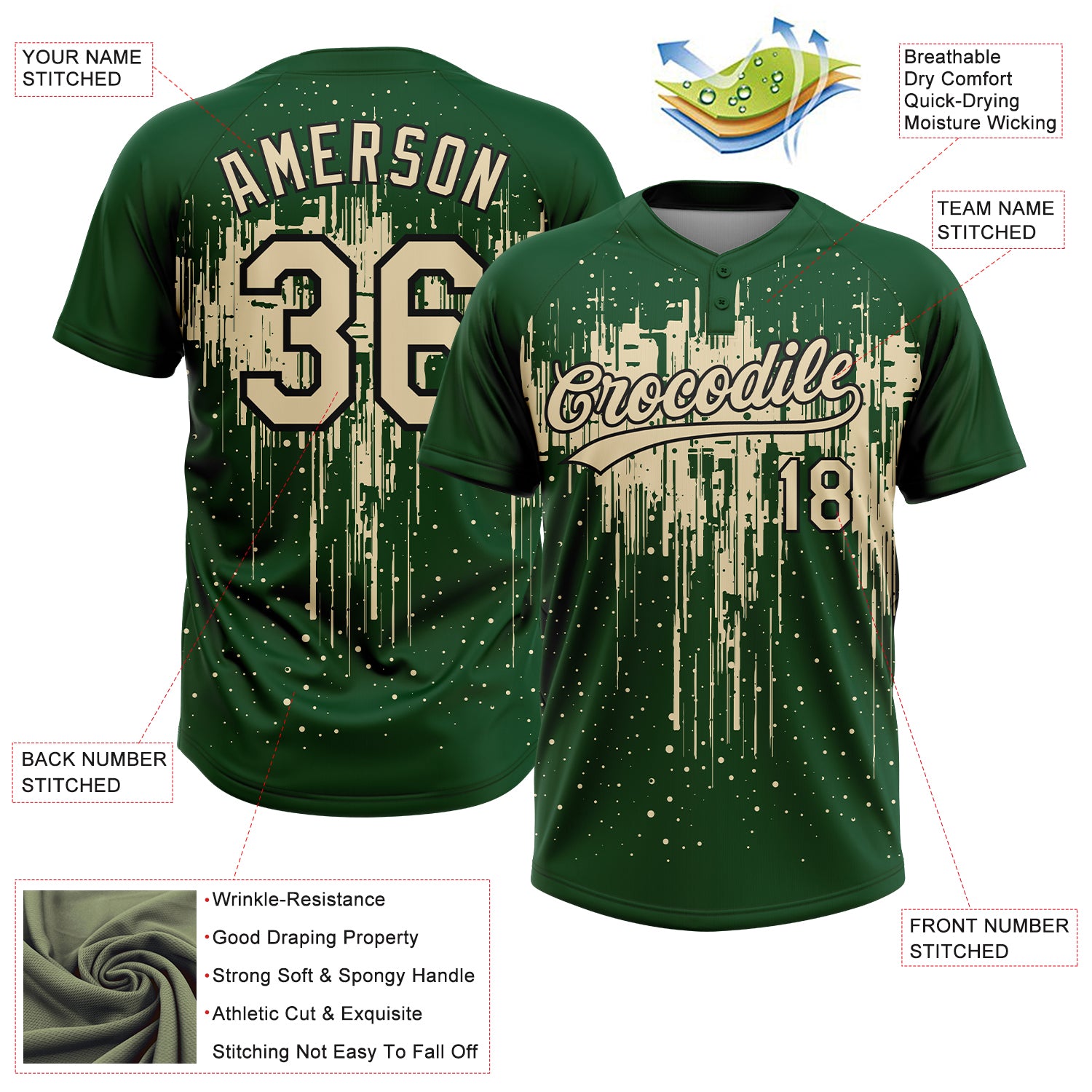 • Charger l'image dans la galerie, Custom Green Cream-Black Dripping Splatter Paint Two-Button Unisex Softball Jersey