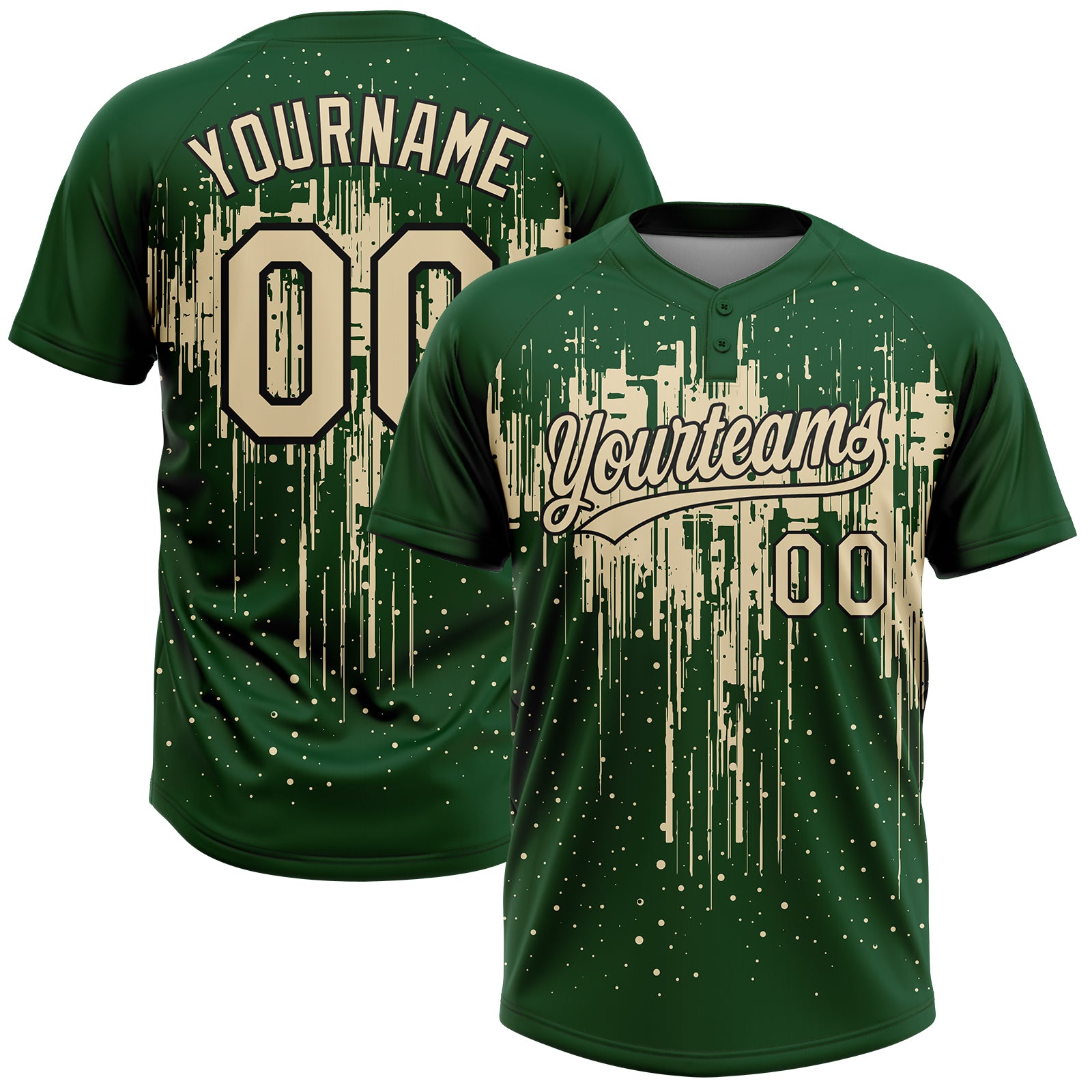 Custom Green Cream-Black Dripping Splatter Paint Two-Button Unisex Softball Jersey