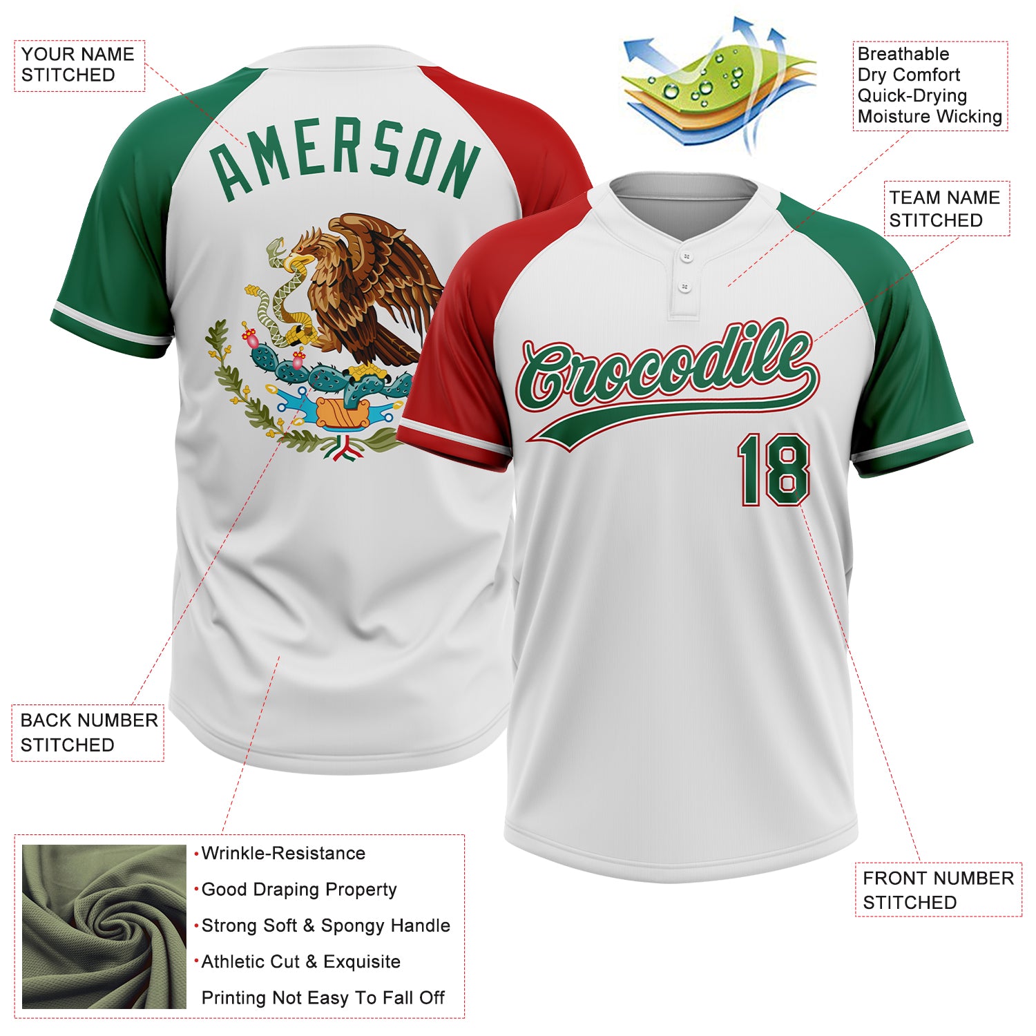 Custom White Kelly Green-Red Mexico Two-Button Unisex Softball Jersey