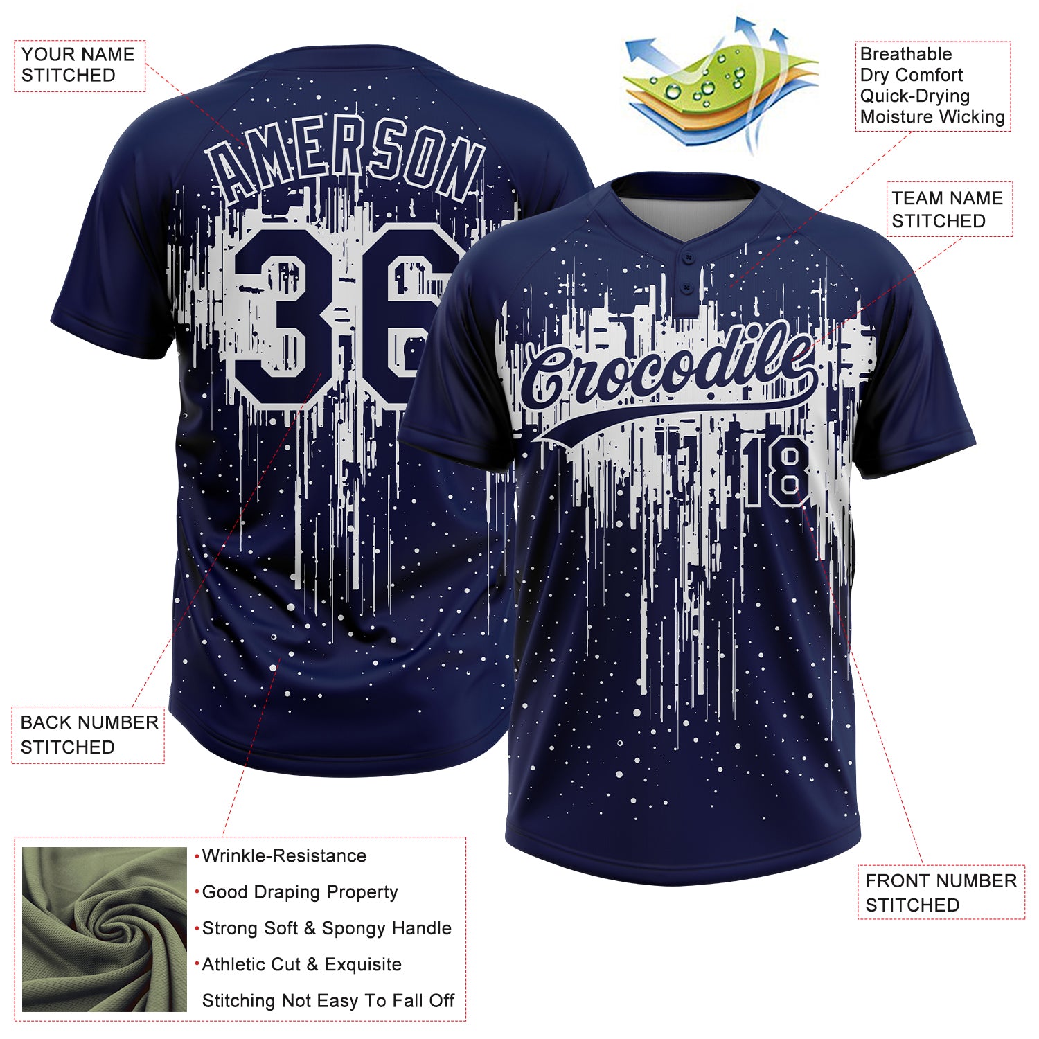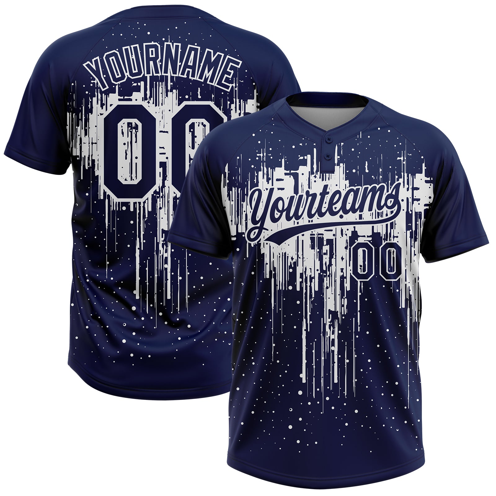 Custom Navy White Dripping Splatter Paint Two-Button Unisex Softball Jersey
