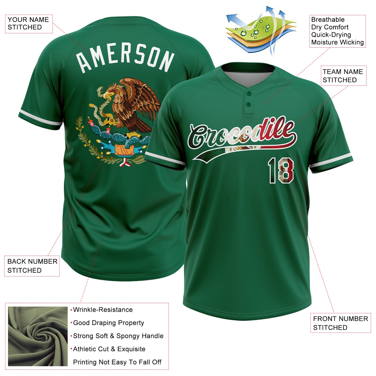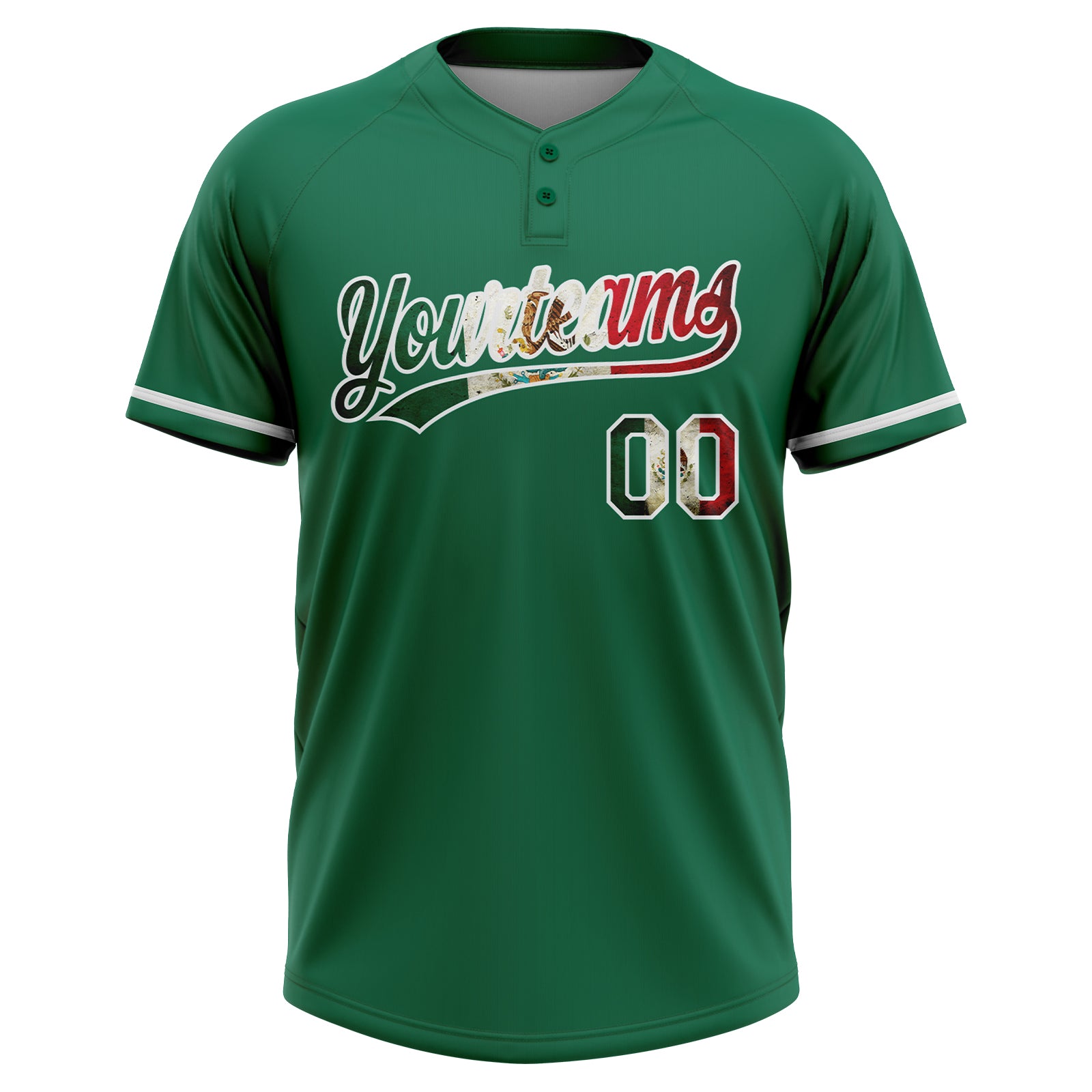 Custom Kelly Green Vintage Mexican Flag-White Mexico Two-Button Unisex Softball Jersey