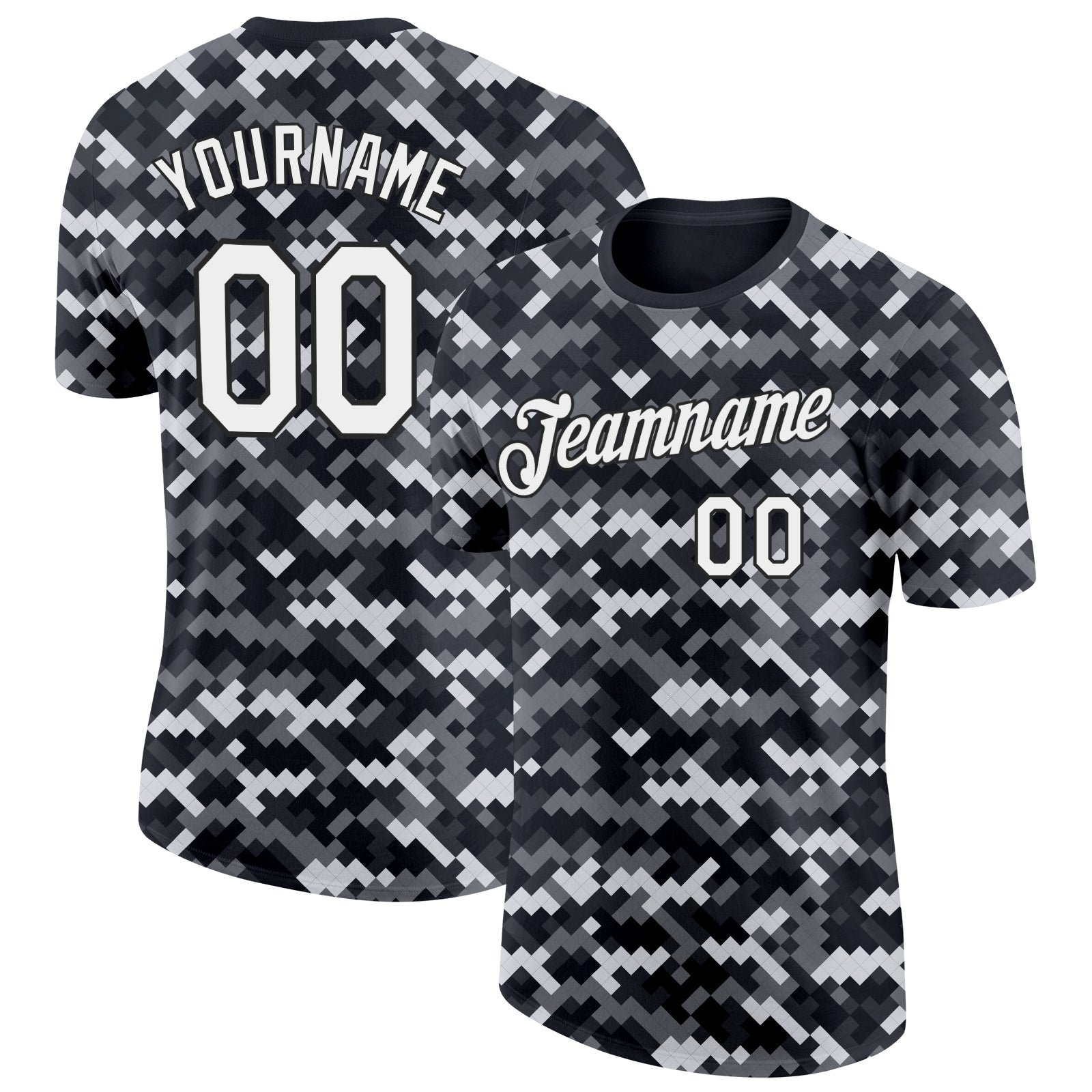 Custom Camo White-Black Urban Digital Camouflage Pixel Salute To Service Performance T-Shirt