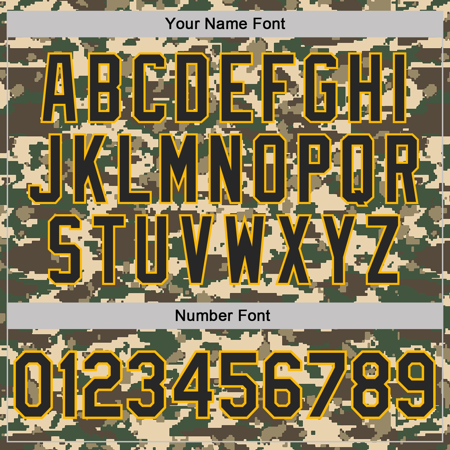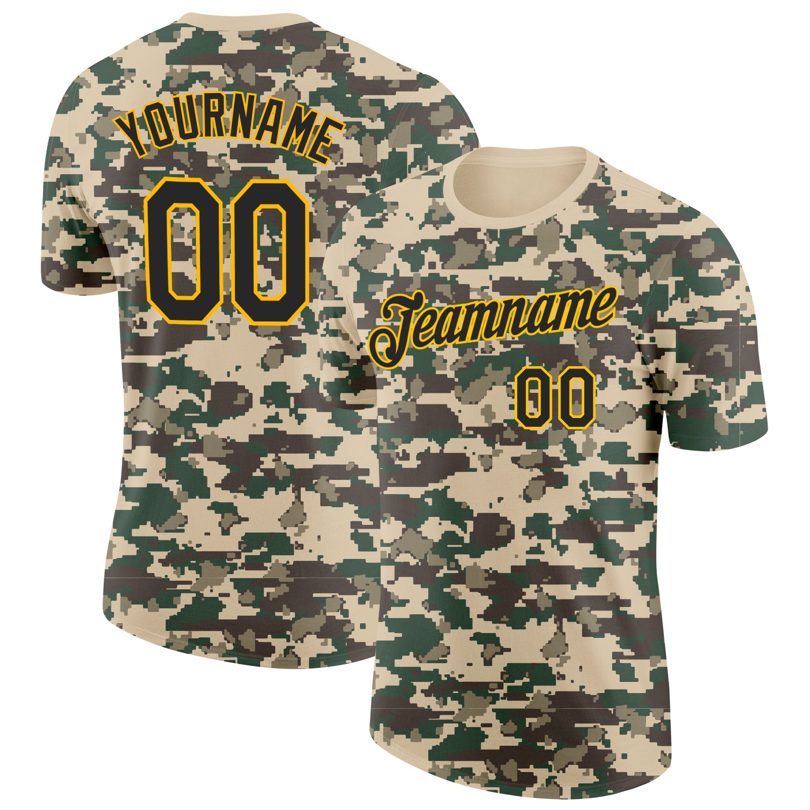 Custom Camo Black-Gold Woodland Forest Digital Camouflage Pixel Salute To Service Performance T-Shirt