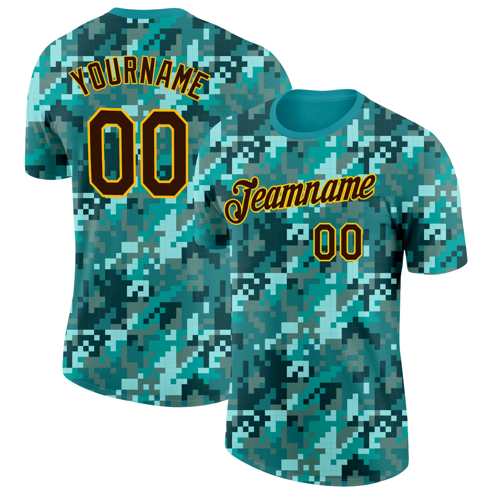 Custom Camo Brown-Gold Ocean Digital Camouflage Pixel Salute To Service Performance T-Shirt