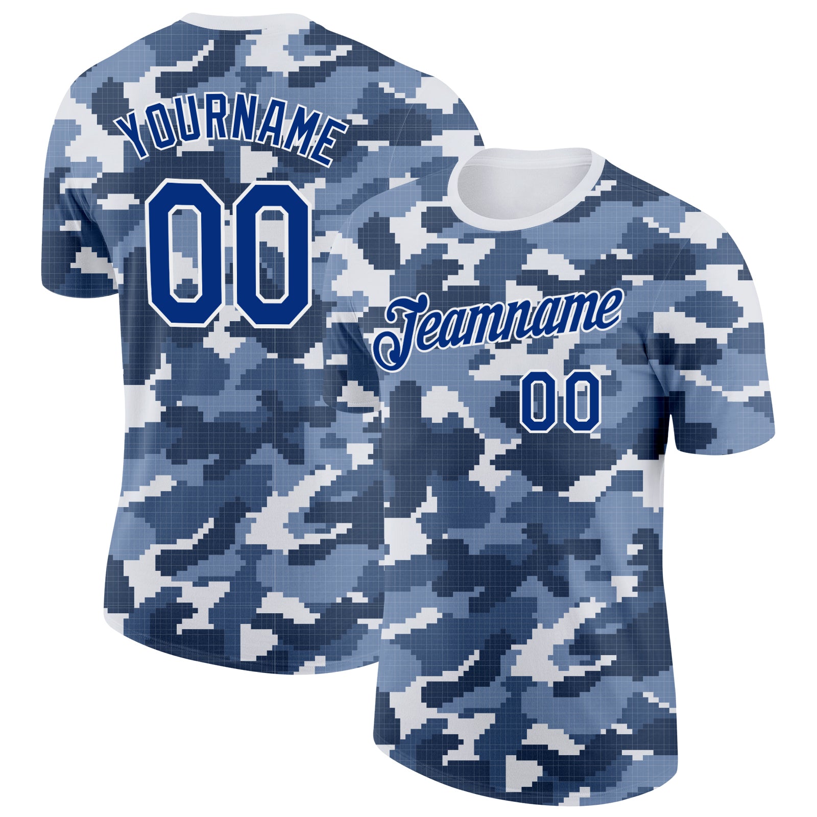 Custom Camo Royal-White Digital Camouflage Pixel Salute To Service Performance T-Shirt
