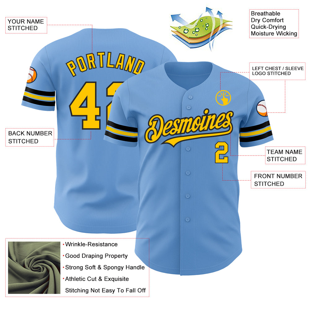 Custom Light Blue Yellow-Black Authentic Baseball Jersey