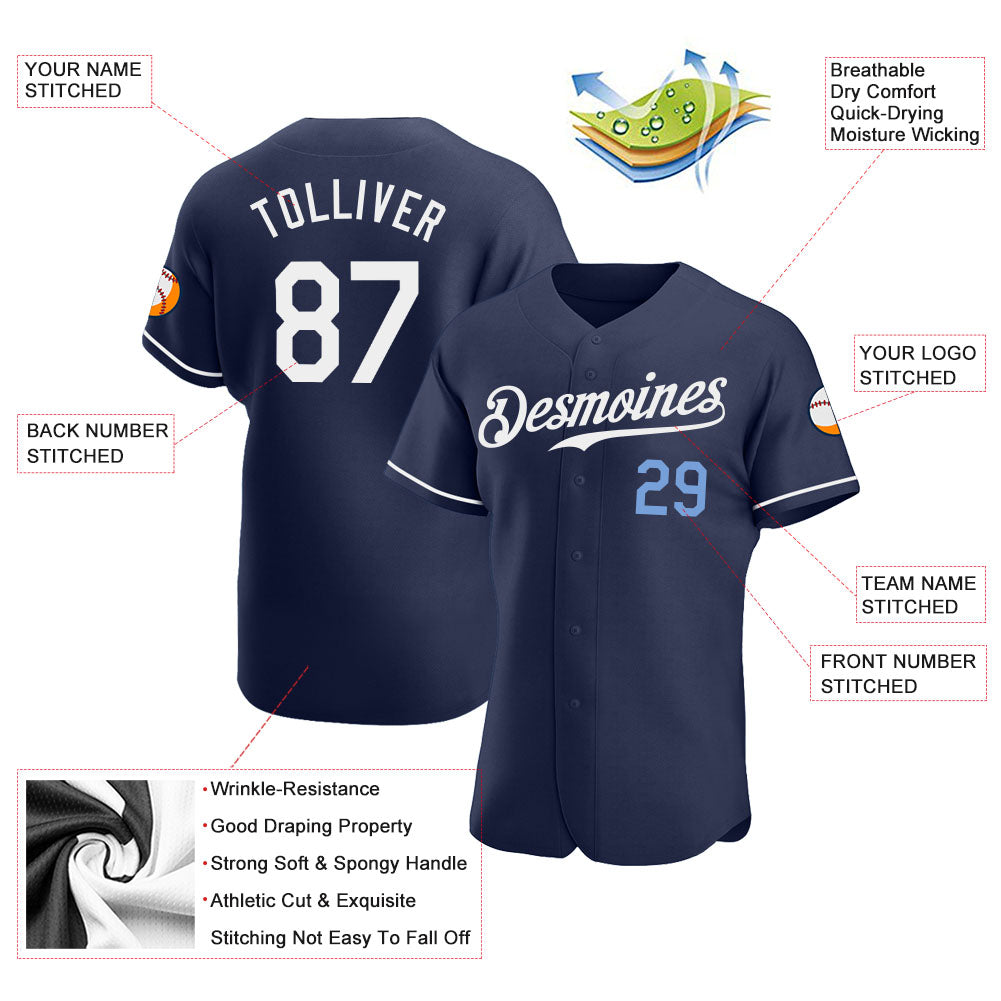 Custom Navy White-Light Blue Authentic Baseball Jersey